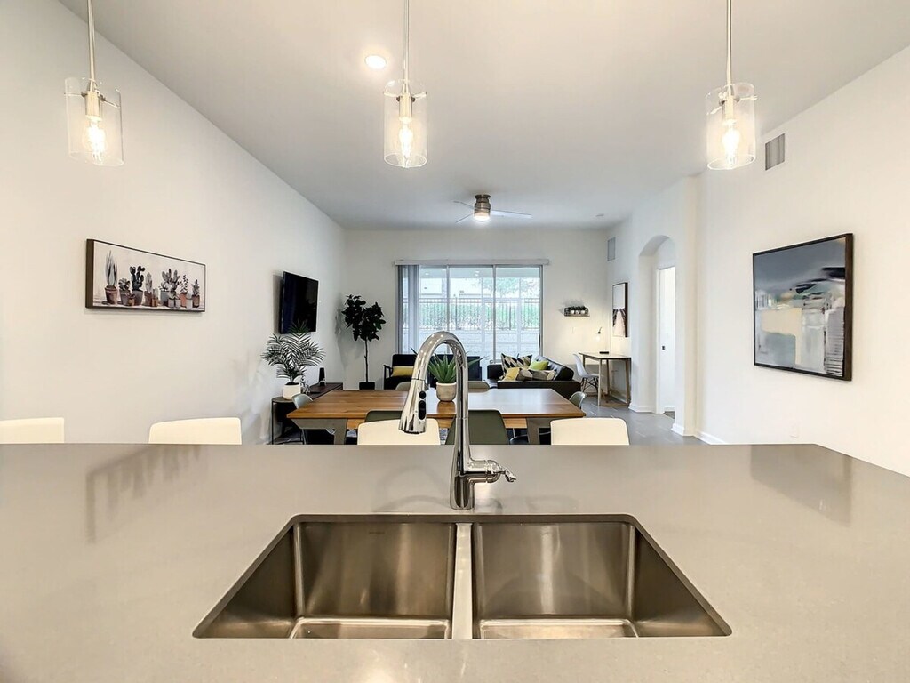 Experience the excitement of the new Epic Universe park this May 22nd by booking your stay at this luxurious condo in the heart of Champions Gate, just minutes from Walt Disney World Resort. This spacious property offers a stylish, sun-inspired design with luxury amenities, making it the perfect choice for families and groups seeking a memorable getaway. Welcome to your luxury home away from home! This condo features a thematic Disney room ideal for families with kids, a fully equipped kitchen for all your cooking needs, free high-speed internet, smart TVs, and a washer and dryer for your convenience. Enjoy full access to resort amenities, including two luxury clubhouses, a water park, heated swimming pools, and more. Secure parking is available in the garage. Optional services are available to enhance your stay, including pool and hot tub heating, pack and play for infants, high chair, early check-in, late check-out, extra cleaning, or linen change. Additional fees apply for these services, and they are subject to availability. Located in the heart of Champions Gate, this condo is just minutes away from Walt Disney World Resort and a short drive to Universal Studios and SeaWorld. Enjoy nearby local restaurants, shopping at Target and Publix, and golfing at Champions Gate Golf Course, all within a few miles. Transportation options like Uber and Lyft are readily available. This property is strictly for vacation purposes with no smoking or pets allowed. Only registered guests are permitted on the premises, and a guest list must be submitted for resort access. Keyless entry is provided for a seamless check-in experience, and our team is available for dedicated support throughout your stay. Please treat the home with care and respect as you would your own. The condo includes a laptop workspace with a desk area for productivity, ensuring a comfortable remote work-friendly environment. A laptop computer is not included.
