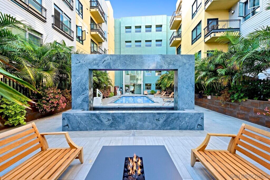 Live in the exclusive Aloft community in Cortez Hill. Tranquil West North facing condo overlooking Balboa Park. This open concept condo has stainless steel appliances, Washer/Dryer in unit, platform style bedroom, floor to ceiling windows, A/C, and modern light fixtures. 1 assigned garage parking space. The building amenities include a pool, spa, gym,fire pit sitting area, BBQ area, and concierge staff 7 days a week. Easy freeway access! Located across the street from Tweet Street Park. Aloft on Cortez Hill is situated in one of San Diego’s most desirable neighborhoods known for its beautiful views and diverse mix of Victorian homes, luxury condos, and modern architecture. The feel is quaint and urban with close proximity to Little Italy ,Downtown, Gaslamp, and Balboa Park. Beaches are just a 15 minute drive.