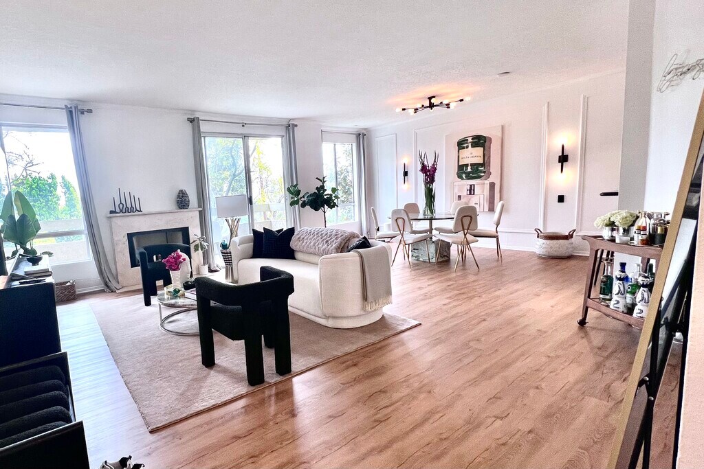 Located in the highly sought-after Norma Triangle neighborhood of West Hollywood, this recently renovated, single-level condo offers the perfect blend of style, convenience, and location. Just steps from the Sunset Strip, Pacific Design Center, West Hollywood Park, top-rated restaurants, cafés, bars, and grocery stores, this home puts you in the center of it all. Inside, you’ll find a spacious living room with a decorative fireplace, wet bar, and access to a large private balcony overlooking a lush greenbelt. The open-concept kitchen is equipped with a refrigerator, dishwasher, range/oven with hood, and ample storage—perfect for anyone who enjoys cooking at home. The primary bedroom features a walk-in closet and a bubble jet soaking tub, while both bedrooms include sleek laminate flooring. Enjoy the convenience of in-unit laundry with built-in shelves, washer, and dryer included. Central A/C. Additional highlights: 2 side-by-side parking spaces in gated underground garage Elevator access from a secure lobby with surveillance cameras Access to community pool HOA includes hot & cold water, trash, and building maintenance No smoking property ensures a clean, healthy environment Close to top-rated West Hollywood schools This is the ideal West Hollywood lease opportunity in one of the city’s most desirable pockets. Don't miss your chance to live in the heart of it all!