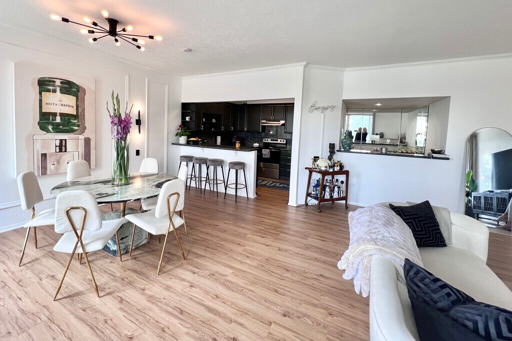 Beautifully remodeled one bedroom condo in highly sought after Norma Triangle. The light and bright south facing unit is just moments away from Weho's best shopping, dining, and nightlife. Gorgeous dark wood flooring throughout, open kitchen with stainless steel appliances, including a dishwasher. The living room has a spacious balcony with tree top and street views. There is a newer, fabulous custom walk in closet. Washer and dryer in the unit. Popular building with pool, gated parking with 2 spaces and secure entry. A must see! Photos were taken with the prior tenants' furnishings. The unit is now vacant of all furnishings. The bedroom wall is no longer painted black and white stripes. Term is for 13 months or longer. MLS# 25572847