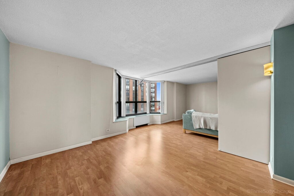 Schedule your showing today for this beautiful yet affordable high floor convertible one bedroom condo unit in the booming South Loop! With south facing windows, this unit boasts abundant natural light and spacious rooms. The bedroom can be completely closed off or left open to the living room. The kitchen comes equipped with plentiful cabinet space, a dishwasher and newer appliances as well as an eat in countertop. Building features a fitness center, pool and laundry facility. Available for occupancy asap!