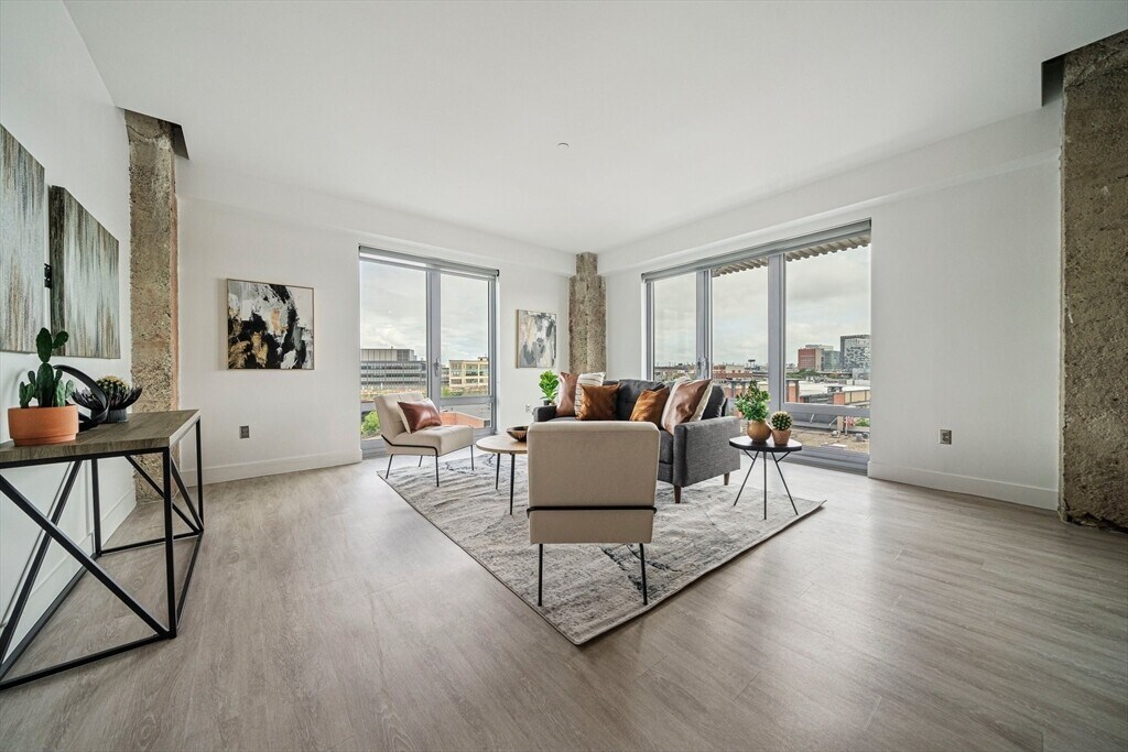 Discover luxury living in this 2-bedroom,2-bathroom corner unit on the fifth floor of the LEED cert. Metro 9 building. This modern,loft-style condo features floor-to-ceiling windows,an open floor plan,and exposed concrete columns and ductwork. The primary bedroom includes an ensuite bathroom. The unit is equipped with stainless steel appliances,an in-unit washer/dryer and LVT flooring . The garage parking space facing the exit ramp for easy access,and there is also a personal storage locker in the basement. Metro 9 offers a wide range of amenities,including concierge service,a fully equipped resident lounge with a pool table,conference room,art space,fitness center,an oasis of a roof deck with grills and seating,pet spa,bike room,and parcel lockers. Enjoy easy access to Kendall,Inman,and Harvard Squares,I-93,the new Green Line Extension,and the Cambridge Crossing development. Great restaurants and daily necessities are just steps away MLS# 73429526