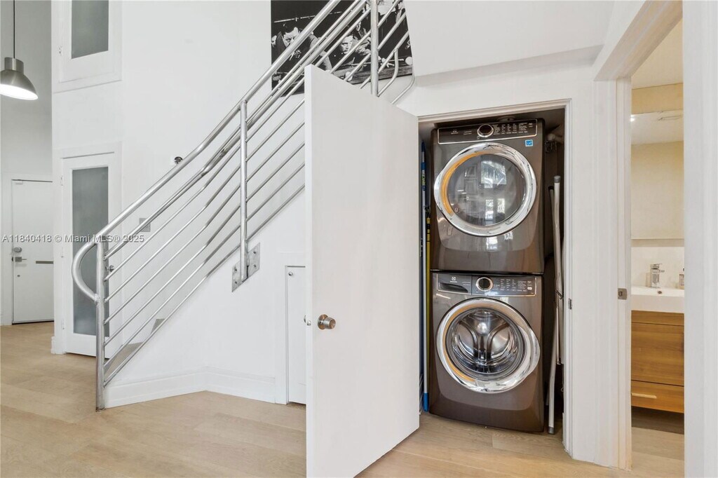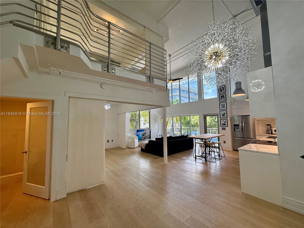 Must see! South of Fifth stunning NYC OPEN style Loft with soaring 20ft double-height ceilings, light wood floors, floor-to-ceiling windows offering an abundance of natural light. Bright primary suite on the upper level of the loft, the second bedroom (w/Murphy Bed) on main level. Configure rooms for how YOU live. Both with sliding fabric shades for privacy.(see photos). Expansive floor layout w/ balcony, elegant Boffi kitchen, stainless steel appliances, washer & dryer, and upgraded bathrooms. Building amenities: outdoor pool, shared rooftop, elevator, secured lobby. One assigned secured parking space and WIFI included. Steps to the restaurants, cafes, boutique shopping.