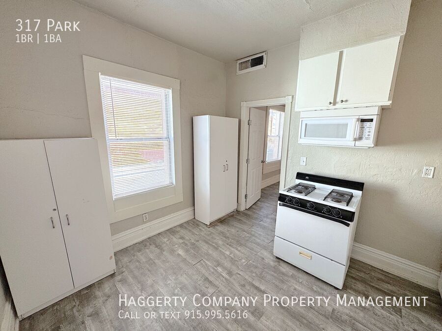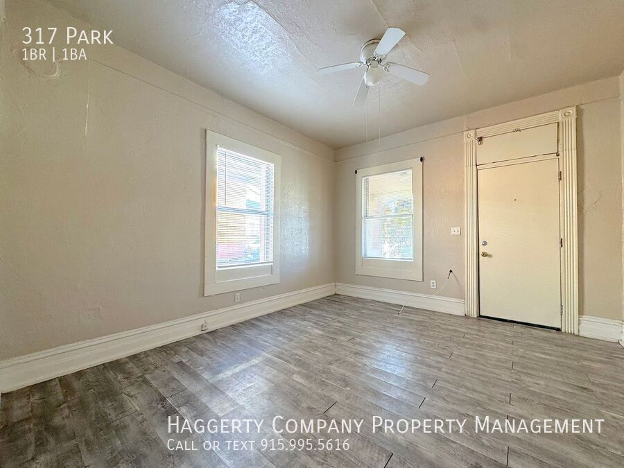 Central El Paso 1 bed/1 bath duplex close to downtown, UTEP and medical centers. Lots of natural lighting throughout. Fully equipped kitchen. Cozy front and back fenced patios. Water and trash utilities included with rent. Fenced Front And Back Patios Pets Allowed With Owner Permission Storage Trash Water Wood Floring
