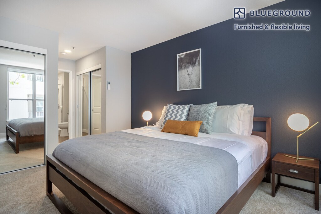 Show up and start living from day one in Mountain View with this cozy two bedroom Blueground apartment. You’ll love coming home to this thoughtfully furnished, beautifully designed, and fully equipped Old Mountain View home. (ID #SFO170) The advertised rate of $5,480/month is the lowest available price, based on a 11 month(s) and 29 day(s) stay with a move-in date of January 30, 2026. Rates vary depending on the duration of stay, season, and other parameters. For exact pricing and additional pricing components, please visit our website and enter your desired move-in and move-out dates. The rate is applicable when billed upfront; it can be higher if billed in multiple payments. Brokers are welcome to reach out. Were you looking for an unfurnished lease? Try Blueground instead and upgrade from unfurnished to furnished living: - Furnished at rates comparable to unfurnished - No setup or furniture costs - save thousands - Move-in ready - save time, just bring your suitcase Designed with you in mind As with any Blueground apartment, you’ll find a thoughtfully designed space complete with beautiful furniture and a fully equipped kitchen in this two bedroom property. And, thanks to our superior quality mattresses, luxury linens, and towels, you can relax knowing you’ll always feel comfortably at home. When you’re ready for some fun, you can take in the Mountain View vibes or bring the entertainment to you with the premium wireless speaker or smart TV. This apartment also offers in-apartment laundry. Sleeping arrangements King Bed, 70.8in/180cm King Bed, 70.8in/180cm Amenities Building amenities unique to this two bedroom apartment include an on-site: - BBQ Area - Dryer - Swimming pool - Washing machine - Lounge - Parking - Pets allowed Arrival and ongoing support The entire apartment is yours to enjoy! Throughout your stay, you’ll have access to our Client Experience team through the Blueground App. You can schedule additional cleanings, submit maintenance requests, and view our neighborhood recommendations with just a few taps. We’ll share all details upon confirmation of your stay. Other things to note Building amenities may have an extra cost. This Blueground apartment has flexible lease options, allowing you to book it for one month, a year, or more. Pets are welcome, though weight limits and breed restrictions apply and may incur fees. Parking is offered based on availability and is subject to a fee. Please keep in mind that this is a walk up building. We take great pride in ensuring every photo displayed is shot in our own units with our actual furnishings. That said, we regularly refresh our decor and furniture arrangement, which may differ from what’s pictured. [SI]