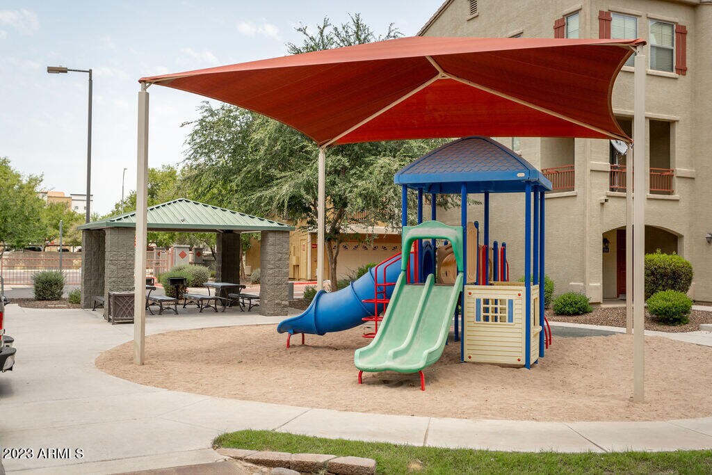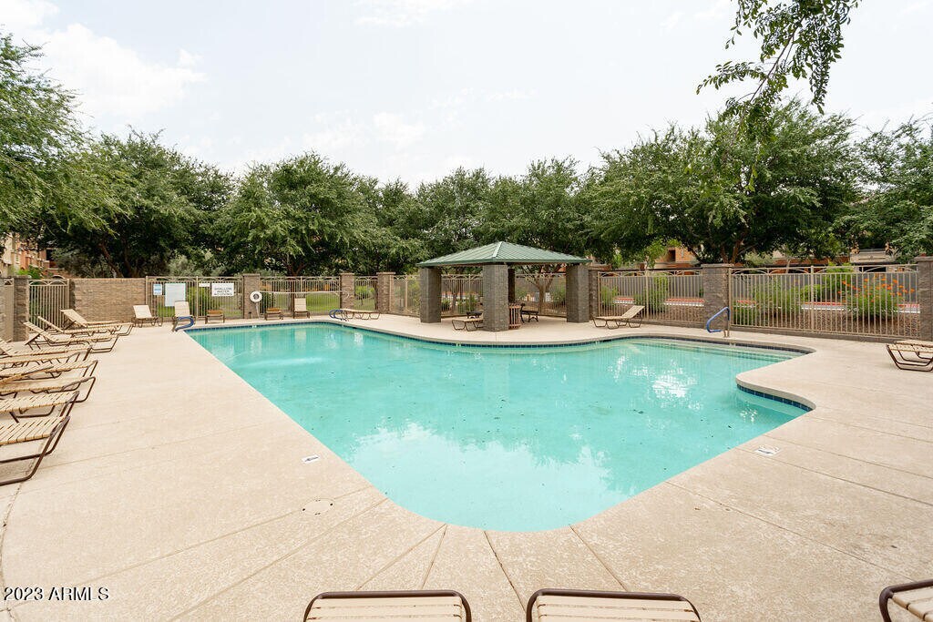 Industrial-style loft condo featuring brick paneling,soaring ceilings,and a spacious open-concept great room with stylish wood-look flooring. Two private primary bedrooms,each include en-suite bathrooms for comfort and privacy. Enjoy a balcony for fresh air,plus the convenience of a private 2-car garage. Washer/dryer,and refrigerator are included. This gated community offers three pools and children's playground,with a prime LOCATION! Just minutes from the 101 & 202 freeways,Chandler Fashion Square,Chandler Regional Hospital,Microchip,Intel,and endless shopping and dining options.