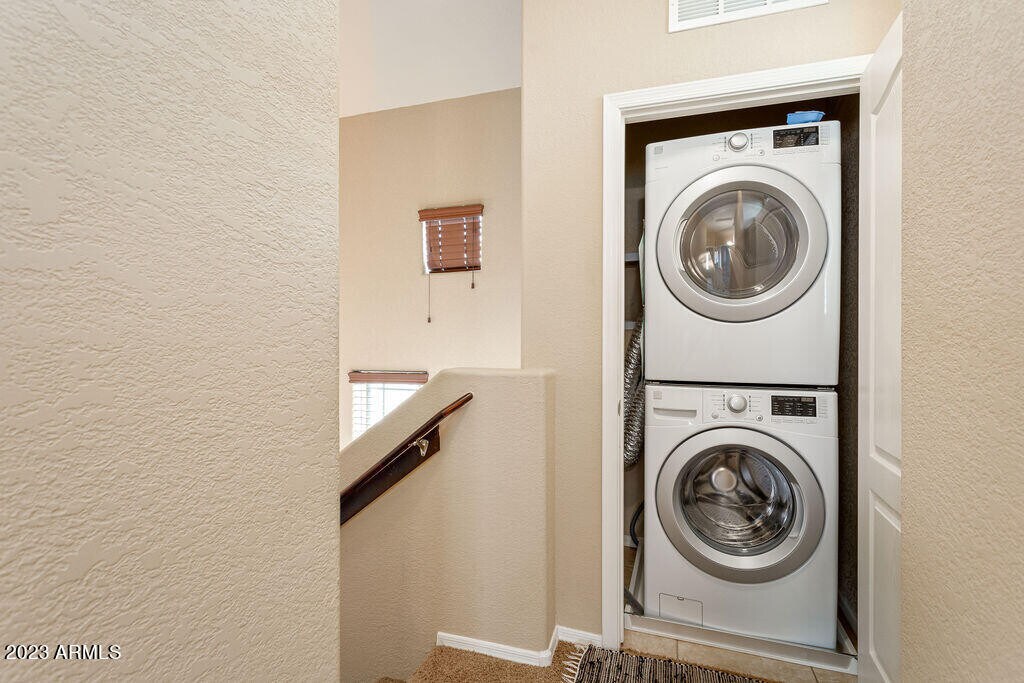 No Application Fees! Fantastic 2 bedroom,2.5 bathroom tri-level townhome in the desirable Via De Cielo community in the heart of Chandler. This home features an open second-level living space with excellent natural light,tile flooring throughout,two-tone neutral paint,upgraded window blinds,and ceiling fans in every room. The spacious living room opens to a private balcony overlooking the sparkling community pool and flows into the dining area and updated kitchen. The kitchen features Quartz countertops and backsplash,a large center island with breakfast bar,stainless steel appliances,and a separate pantry. Both bedrooms are located on the third floor,each with a private attached bathroom. Stackable washing machine and dryer included. Two-car garage provides ample parking and storage. All Denali Real Estate residents are automatically enrolled in the Resident Benefits Package (RBP) for $55.00/month which includes Renter's Liability Insurance,Credit Building to help boost the resident's credit scores with timely rent payments,up to $1M Identity Theft Protection,HVAC air filter delivery (for applicable properties),our best-in-class resident rewards program,and much more!