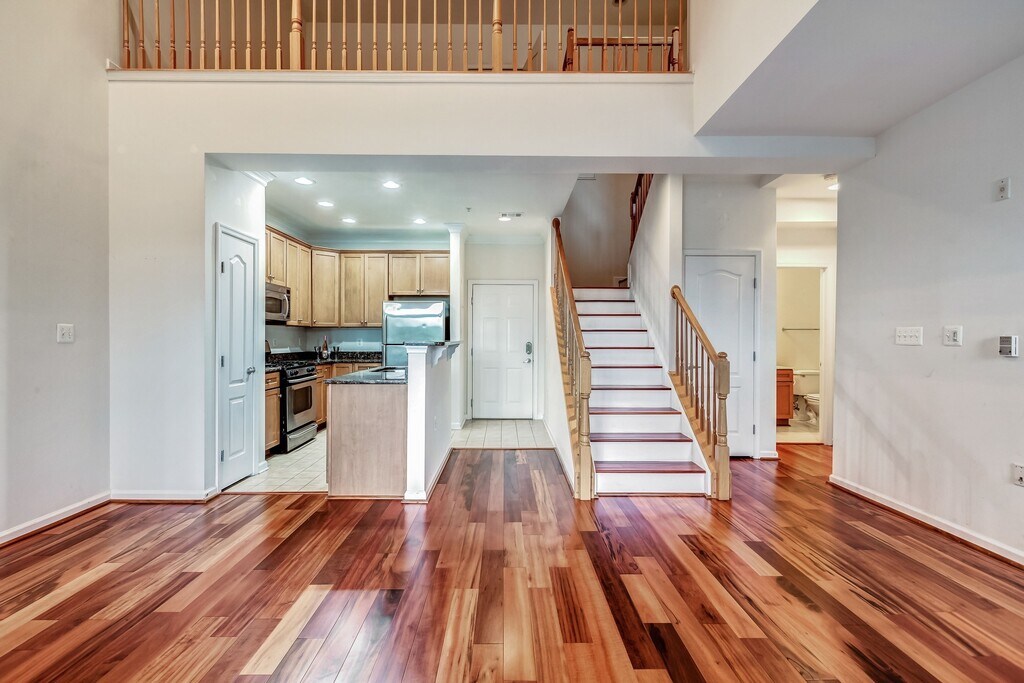 Stunning Two-Level Penthouse Condo with Bonus Room and Private Garage in the Coveted Residences of Lorton Station Welcome to this rarely available, sun-filled penthouse condo offering 2 bedrooms, 2 full baths, and a versatile loft-style bonus room overlooking the family room all complemented by a private, enclosed garage (just $50/month). Situated in the highly desirable Residences of Lorton Station, this two-level home impresses with soaring 20-foot ceilings and dramatic windows that flood the space with natural light. New engineered hardwood flooring spans both levels, enhancing the open, modern layout ideal for everyday living and entertaining. The stylish kitchen is complete with stainless steel appliances, granite countertops, and a spacious pantry perfect for meal prep or hosting guests. The main level features a well-sized bedroom and full bath, offering great flexibility for guests, family, or a home office. Upstairs, the primary suite provides a generous walk-in closet and an en suite bath with a soaking tub and separate shower. The open loft area overlooking the living space makes an excellent office, gym, or relaxation area. Step out onto your private balcony to enjoy peaceful, elevated views. Additional highlights include a newly installed custom hot water heater unique to this unit an extra storage unit conveniently located just down the hall, and ample visitor parking. The location is truly unbeatable: only one block to the Lorton Station VRE and minutes from I-95, Route 1, Amtrak, Fort Belvoir, shopping, dining, and major commuter routes. Mortgage savings or incentives may also be available for buyers of this home.