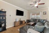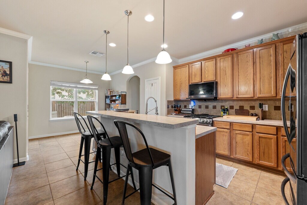 Beautifully maintained single story home situated on a spacious corner lot with lake views right across the street in San Antonio TX. This well designed 3 bedroom 2 bath home with flex room offers both comfort and versatility in a highly desirable setting. Inside, the entry creates a grand first impression and can easily serve as a formal dining space if desired. To the right, a private study enclosed with French doors provides an ideal work from home setup and enjoys peaceful views of the lake. The main living area feels open and inviting, offering plenty of room to relax or entertain. The open layout kitchen connects seamlessly to the living and breakfast areas and features abundant cabinetry, generous prep space, and modern appliances. The kitchen sink includes convenient accessories that convey, including a built in straining drying rack. Positioned toward the back of the home for added privacy, the primary suite offers a spacious retreat with a dual vanity, walk in closet, separate shower, and soaking tub designed for relaxation. Outdoors, the oversized backyard includes a sun room perfect for enjoying your morning coffee or evening wind down. The expansive green space provides room for gardening, entertaining, or simply enjoying the outdoors. Residents enjoy access to the neighborhood lake and a community garden that is part of the San Antonio Garden Network. With quick access to Loop 410 and Highway 151, commuting is convenient, and the home is just a short drive to Lackland Air Force Base and Chapman Training Annex, along with nearby shopping and dining options.