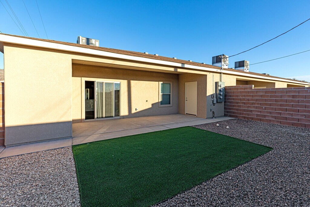 Fully furnished brand new construction with luxury vinyl flooring throughout! This single story unit is beautifully built and offers 1 bedroom, 1 bath (tub/shower), energy efficient central heat/refrigerated air, water softener and private carport parking. In the kitchen you'll love the stainless steel appliances, granite countertops, disposal, gas range/oven and dishwasher. Great privacy in the backyard with covered patio, cinder block wall, rock landscaping and turf grass. Washer and dryer (gas and electric) hookups and R/O hookups with the unit. No cats, no aggressive dog breeds,