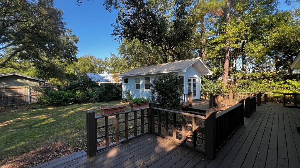 Spacious 1,904 sq. ft. rental home with 4 bedrooms and 3 baths, featuring two primary en suite bedrooms. One oversized primary suite includes a custom bathroom with a beautifully designed shower. The home boasts wood floors throughout, mature landscaping, and multiple decks in the backyard, perfect for outdoor relaxation. Additionally, a 500 sq. ft. insulated and air-conditioned bunkhouse adds extra space for guests, office, or recreation. This well-maintained property is conveniently located off Highway 98 in Daphne, Alabama, offering easy access to shopping and entertainment. Tenant Occupied. Requires 48 hour notice for showings.