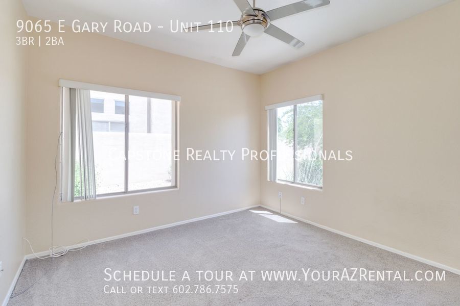 This 3-bedroom, 2-bathroom home is located in a desirable Central Scottsdale community, offering easy access to freeways, shopping, dining, and local amenities. With a neutral color palette throughout and a thoughtfully designed split floor plan, this home provides both comfort and functionality for everyday living. Step inside to a spacious living area with high ceilings and a cozy fireplace, creating an inviting space to relax or entertain. The kitchen features white appliances, ample cabinetry, a breakfast bar, and an eat-in dining area. Vinyl and carpet flooring add durability and comfort throughout the home. Key Features: Spacious Living Area: High ceilings and a fireplace for a bright, open feel Kitchen & Dining: White appliances, breakfast bar, eat-in kitchen, and ample cabinetry Split Floor Plan: Ideal for privacy and functionality Primary Suite: Generous master bedroom with walk-in closet and dual sink vanity Additional Features: Inside laundry, ceiling fans throughout, and water softener system Outdoor Space: Private covered back patio Community Amenities: Well-maintained community with lush landscaping, sparkling pool, and spa Prime Central Scottsdale Location Conveniently located near major freeways, shopping, dining, and community amenities, this home offers privacy and accessibility in a well-kept neighborhood. Don’t miss this opportunity to live in a great Central Scottsdale location. Schedule a tour today and make this your next home. -- Monthly Fee: Resident Benefit Package $49.99 Security Deposit: Equal to one months rent Cleaning Deposit: $275.00 Pet Deposit: $200.00 per pet One Time Lease Administrative Fee: $150.00 Range Oven/Gas Vinyl Plank Flooring Washer Included; Dryer Included