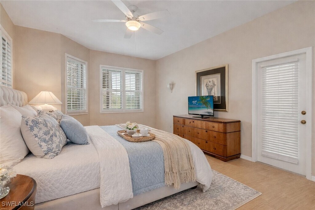 Exceptional First-Floor Turnkey/Furnished Annual Rental with Attached Garage, Storage & Lake View in Spanish Wells Golf and Country Club Welcome to this exceptional first-floor condo offering 1,364 sq. ft. of living space in the highly desirable Spanish Wells Golf and Country Club. This split 2-bedroom, 2-bath residence is being offered turnkey furnished, making it move-in ready for you to immediately enjoy as your new home. From the moment you enter, you’ll appreciate the warm and inviting layout. The open dining options include a glass-top dining table conveniently located just off the kitchen, bar seating at the counter, and a lovely outdoor dining area on the screened lanai—perfect for enjoying Florida’s beautiful weather. The west-facing lanai offers serene lake and golf course views, breathtaking sunsets, and is equipped with hurricane shutters for peace of mind. Additional features include a washer and dryer inside the unit, an attached garage with private storage, plus an assigned parking space and ample guest parking. The condo is located close to the community pool, in a very quiet and peaceful setting—an ideal place to relax and unwind. Spanish Wells offers a prime location near shopping, dining, and entertainment, with Barefoot Beach’s white sandy shores less than 5 minutes away. Listed by: Premiere Plus Realty Company Listing posted by Linda Castanon [SYNDID 4135966 12232025]