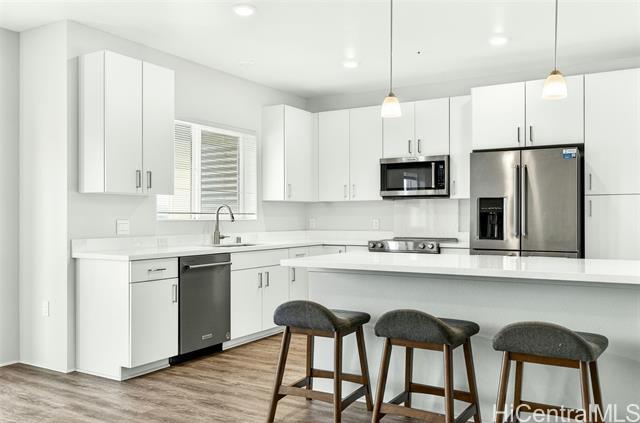 Welcome to Nahele at Ho'opili! Secured 1 bedroom, 1 bath condo with 1 assigned parking stall. Unit includes modern appliances, washer/dryer in unit, split A/C, LVT and carpet flooring. Enjoy Ho'opili's community amenities including community center, pool, bbq areas, bike rack room, guest parking, etc. Convenient to Kroc Center, Shopping, UH West Oahu Campus, Rail Station & Freeway Access. Rent - $2,500.00, Security Deposit - $2,500.00. Minimum household income of $5,000.00. Tenant pays electric/cable. RENTER'S INSURANCE REQUIRED UPON MOVE IN. Nonrefundable application fee of $25.00, minimum credit score of 680 required. NO PETS/NO SMOKING. Contact Tara Sumida [RS-87721] at TEXT PREFERRED or email to schedule a showing.