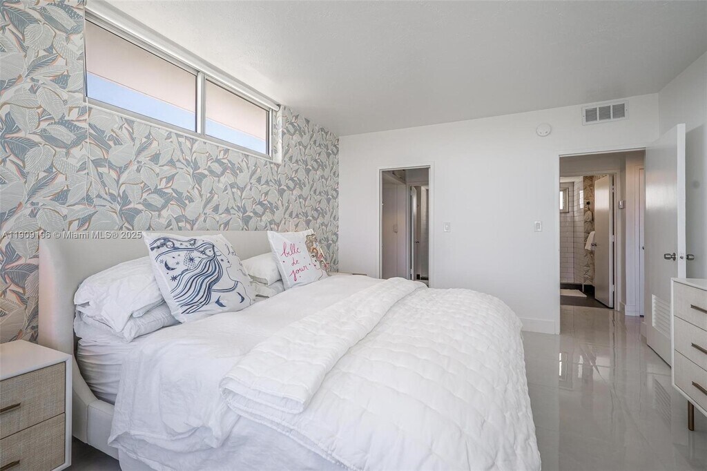 Beautifully updated 2 Bedroom + den, 3 full bathroom rental (available furnished or unfurnished) in the desirable waterfront community of Bay Harbor Islands known for its A-rated school and walkability: 10 minute walk to the beach, Bal Harbour Shops, as well as a multitude of local restaurants and shops. Jaw-dropping panoramic views of the ocean, the intracoastal, and Miami Beach from every room. The building is a true boutique Mid-Century Modern Gem with high ceilings and loads of MiMo charm. The apartment has impact windows throughout, fully renovated kitchen and baths, and comes with a storage unit and free laundry on same floor.