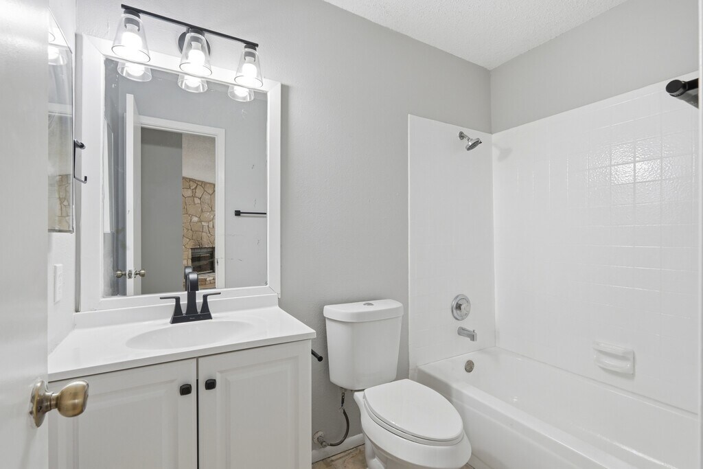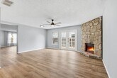 This well-maintained single-story rental offers a functional layout with a stone exterior and comfortable living spaces, featuring a living room with recessed lighting and a stone wood-burning fireplace, plus a kitchen with white cabinetry and a breakfast bar. The primary bedroom includes an attached bath with a garden tub and walk-in closet, while secondary rooms provide flexibility for a home office or storage. The backyard features a patio slab and privacy fence for easy outdoor living, and residents enjoy neighborhood amenities including a pool, park, sports court, and clubhouse. Conveniently located near Loop 1604 with quick access to SeaWorld, Alamo Ranch, La Cantera, Northwest Vista College, and Lackland AFB, and situated in the award-winning Northside ISD.