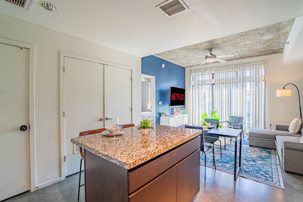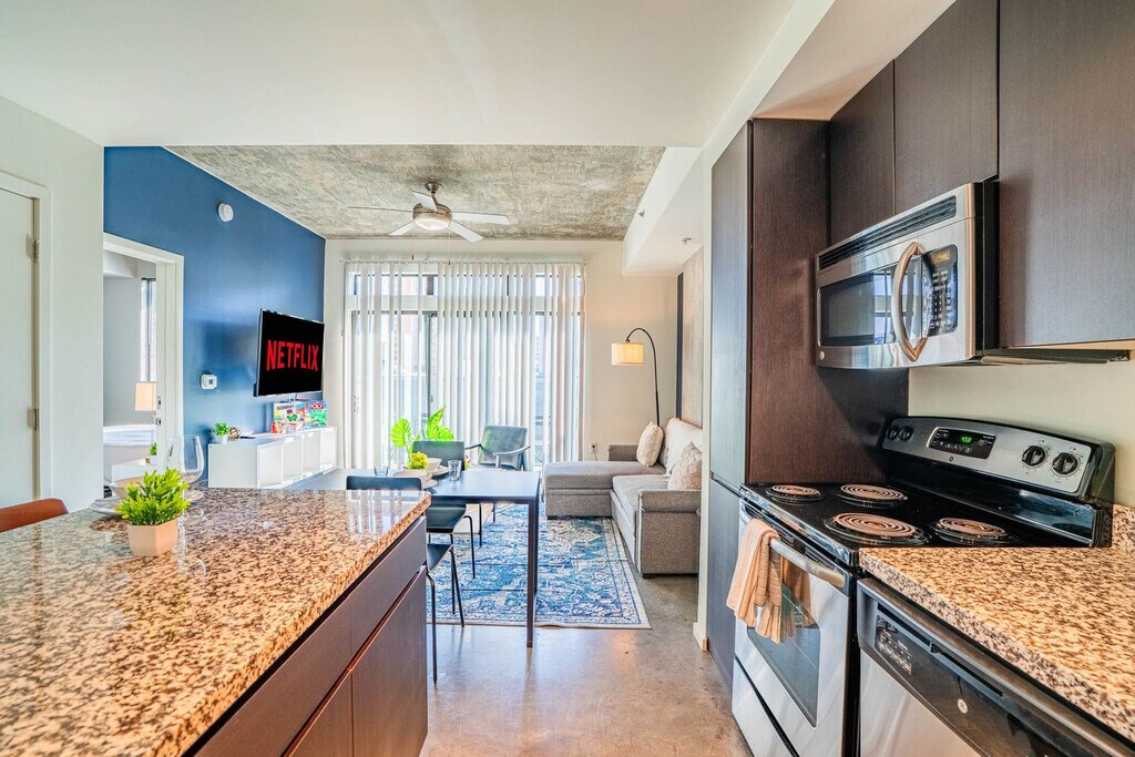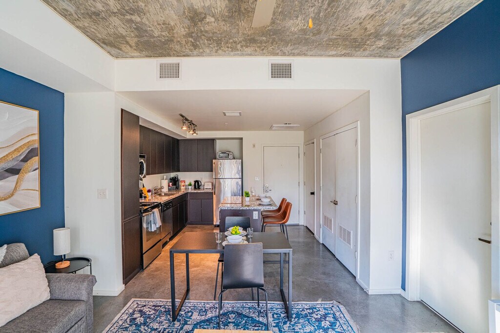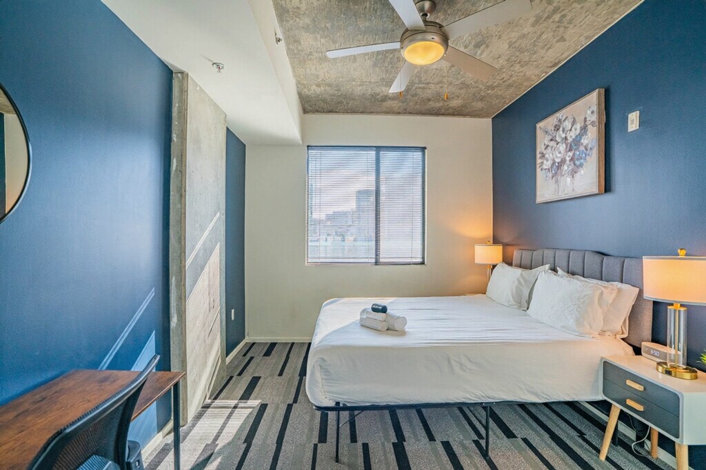 Feel at home in this modern condo in the heart of downtown Phoenix, near ASU and Roosevelt Row. This 1-bedroom apartment offers an open layout and high ceilings. The living space features an innovative open-concept design that blends the living and dining areas with the kitchen. It features fast Wi-Fi and a fully equipped kitchen with a microwave, stove, oven, refrigerator/freezer, dishwasher, toaster, coffee maker with coffee essentials, electric kettle, sink with hot and cold water, glasses, silverware, pots, pans, and a dining table with chairs. The stylish living room has a sofa bed, a 4K 55" HDR smart TV, and a coffee table. Parking is available with 1 spot, and the guest needs to print their parking pass. Walk to art galleries, coffee shops, dining, and nightlife. This apartment offers easy access to the convention center, light rail, and top attractions. The apartment is nestled in a dynamic urban enclave that combines modern living with cultural richness. Immerse yourself in the arts and culture scene just steps away in the Roosevelt Row Arts District, known for its eclectic galleries and vibrant street art. Indulge in the diverse culinary landscape of downtown Phoenix, and experience the lively nightlife with trendy bars and rooftop lounges. Sports fans and concert-goers will appreciate the close proximity to Chase Field and Talking Stick Resort Arena. Enjoy the outdoors at nearby Hance Park. Navigating the city is a breeze with convenient access to public transportation and major highways. The Roosevelt/Central Ave Station is nearby, providing easy access to key destinations in Phoenix. Phoenix boasts a bike-friendly atmosphere, and this apartment is situated in an area where cycling is both practical and enjoyable. Rideshare services such as Uber and Lyft are readily available in downtown Phoenix. This apartment is ideally situated within walking distance of various attractions, dining options, entertainment venues, and cultural hotspots. For those exploring beyond downtown, easy access to major highways like I-10 ensures quick and efficient travel. Explore the city in a fun and eco-friendly way with scooter rentals. Quiet hours are between 10 pm and 8 am every day. If there are noise complaints or any violation of this rule, it may result in cancellation of booking and removal from property without refund. There is a strict no-party policy, and if there is a party of any kind, the police will be called and everyone will be removed from the property with no refunds. No unauthorized guests are allowed at the unit, and there is a $100 fine per guest if discovered. Smoking is prohibited without exception on this property, and if any signs of smoking are found in the unit or on the premises, a fine of $500 will be imposed. For units that permit pets, if you are bringing a pet(s), please let us know beforehand for the fees, otherwise there will be a fine of $500 if discovered, no exceptions. You may be charged extra for cleaning if the property is left in a state that necessitates additional cleaning. Lost or unreturned keys cost $500. For delayed checkout, there will be a $500 late check out fee, no exceptions. If a lockbox is provided, it must be kept locked at all times. [SI]