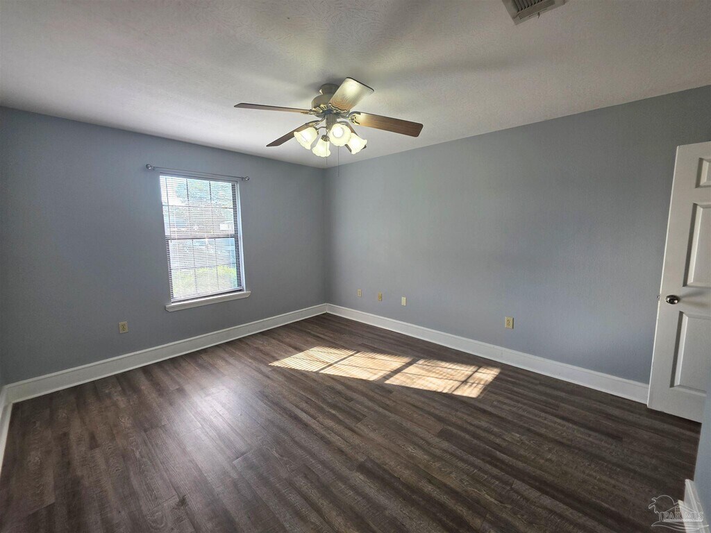 Welcome to this beautifully updated 2BR/2BA duplex located in Pensacola. This spacious home features a generous living and dining area,perfect for entertaining or relaxing. The large kitchen offers ample cabinet and counter space,making it a dream for any cook. The master bedroom includes a private bathroom and double closets,while the oversized guest bedroom also offers a large closet. Additional highlights include an indoor laundry room with extra storage and washer/dryer hookups for your convenience. Flooring consists of a mix of ceramic tile and LVP,adding an elegant touch throughout. Ceiling fans are installed in every room for added comfort. Central heat and air ensure year-round comfort. Outside,you'll find a covered front porch and a covered back patio—ideal for enjoying Florida weather. The backyard is privacy-fenced,providing a nice space for outdoor activities. Small pets may be considered with owner approval and a $325 non-refundable pet fee per pet. No smokers,please. Roommate applicant,if accepted,must qualify individually.