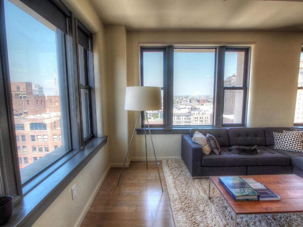 True luxury city living doesn’t get any better than life at the Syndicate! Located high up on the 15th floor this is a northwest corner unit offering panoramic views as far as the eye can see. Never a blah day with all the gorgeous natural light! The great thing about this unit is the layout and what it offers. Both bedrooms are big and both have windows (very rare) offering premium views. Both bedrooms are also on opposite ends and are private w/walls to the ceiling and sliding glass doors. There is also a separate office space w/extra storage. Closets are quite generous and the master is HUGE with a wall of custom built-ins. The master bath features a granite vanity with separate soaking tub and glass walk-in shower. The living space is open concept (gorgeous) with kitchen in the middle flanked by the living and dining areas. High-end finishes abound and the views just don’t stop. Large private laundry room, private storage & private garage parking top it off. Amenities include club room, courtyard, fitness center, art galleries, workshop, meeting room, private storage and best of all, a location right next door to Schnucks, a full-service grocer. WALK SCORE 100%!