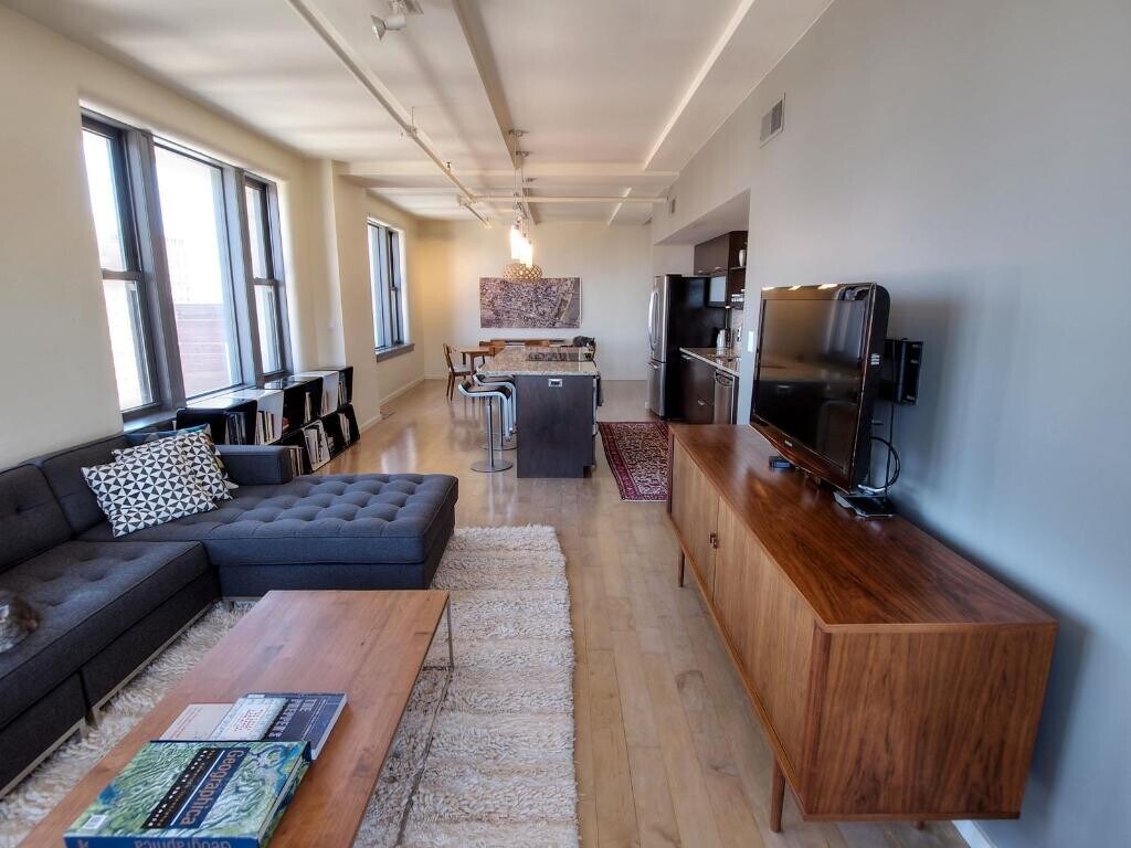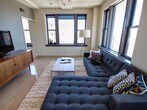 WELCOME TO SOPHISTICATED LUXURY in downtown’s premier luxury building, the Syndicate! Unit 1302 is a spacious and open floor plan offering wonderful 13th floor views to the north. Fantastic layout boasts an expansive living area adjacent to the open-air kitchen featuring center island, custom cabinets and custom lighting. On opposite sides you have a perfect home office and then a very spacious bedroom suite w/ two large windows (tons of natural light), a nicely outfitted walk-in closet and a connection to the well-appointed bathroom with marble counters and large soaking tub. This bath also has a second access point from the kitchen area. Off to the side is a HUGE utility/laundry room that doubles as a coat closet and extra storage. Unit comes with (1) private heated garage parking spot included and an extra storage cage in the climate-controlled storage room. Amenities include well-appointed lobby, 2,600 sf fitness center, club room, courtyard, meeting space, workshop, art galleries, secure package room, recycling, gated and enclosed loading dock, on-site building manager and a stunning rooftop deck! AND Schnucks Grocery store is right next door! In fact, you don't even have to go outside to get to it. Walk to any and everything downtown. This is downtown's PRIME LOCATION!