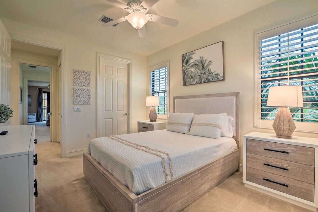 The advertised rate of $11,615/month is the lowest available price, based on a 1 month(s) and 2 day(s) stay with a move-in date of February 28, 2026. Rates vary depending on the duration of stay, season, and other parameters. For exact pricing and additional pricing components, please visit our website and enter your desired move-in and move-out dates. The rate is applicable when billed upfront; it can be higher if billed in multiple payments. Your memorable Florida vacation awaits with a stay at this well-appointed 3-bedroom, 2.5-bathroom vacation rental located inside Ole at Lely Resort. Spend sunny days relaxing on Tigertail Beach, swimming laps in the community pool, teeing off at championship golf courses, and perusing the local restaurants and boutiques of Downtown Naples. No matter your adventure, this condo has everything you need and more for the ultimate trip to the Sunshine State. This newly furnished end unit offers a desk workspace with a printer and bicycles for your convenience. The living room features smart TVs and an open floor plan, while the kitchen boasts granite countertops, a dishwasher, microwave, coffee maker, blender, toaster oven, knife set, dishware, flatware, and a breakfast bar with seating. Enjoy the comfort of free WiFi, a washer and dryer, linens, towels, A/C and heating, complimentary toiletries, ceiling fans, and beach chairs and towels. Parking is available with a garage for two vehicles, a driveway for one vehicle, and free street parking. Located in the vibrant Ole at Lely Resort, this condo provides access to a clubhouse, outdoor pool, hot tub, kiddie pool, fitness center, bocce ball court, volleyball court, basketball court, tennis courts, pool table, charcoal grills, and a movie theater. Explore the nearby attractions of Downtown Naples, including its local restaurants and boutiques, or enjoy a day at Tigertail Beach. The property requires stairs to enter and access all bedrooms, which are located on the second floor. Guests will have access to the entire property via keyless entry. A Ring Doorbell with an exterior security camera is installed for your safety, facing the front outdoor entry. The camera does not look into any interior spaces and actively records video when motion is detected or when the doorbell button is pressed. Smoking, pets, events, parties, and large gatherings are not allowed. Guests must be at least 25 years old to book. Additional fees and taxes may apply, and a photo ID may be required upon check-in. A tenant evaluation process is required by the HOA after booking, including a required application fee of $150 per applicant. [SI]