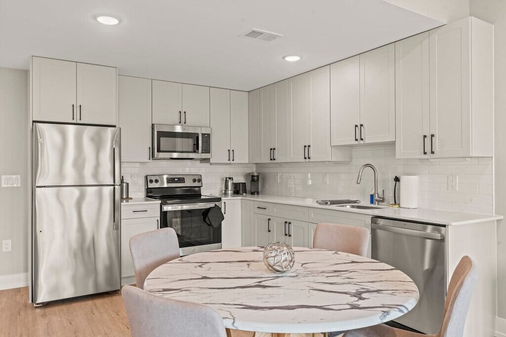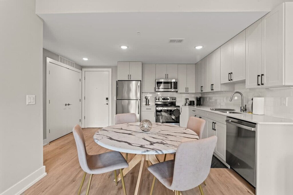 Welcome to your home away from home in the vibrant heart of Philadelphia! This cozy urban retreat offers the perfect blend of comfort and convenience. This charming 1-bedroom apartment promises a memorable stay. This inviting apartment is thoughtfully designed to cater to all your needs for an enjoyable stay. The kitchen is equipped with stainless steel appliances, including a refrigerator, oven, stove, microwave, and dishwasher. The bathroom features a contemporary design with clean lines and high-quality finishes. Pets are allowed depending on size, with an additional cleaning fee of $25 per night for stays of 1 to 4 nights, $200 for stays of 5 to 29 nights, and $300 for stays of 30 or more nights. Experience the best of Philadelphia from this stylish urban apartment. Whether you’re visiting for business or leisure, this apartment is ideally located. No shoes are allowed in the house. Please do your dishes before leaving. If there is evidence of smoking indoors, a $500 fine will be imposed. Please ensure the shower curtain is kept inside the shower basin while showering to prevent water from spilling onto the floor. Surveillance cameras are in the hallways for security, and a Minut device is in the unit for noise level. Includes a comfortable desk and chair. [SI]