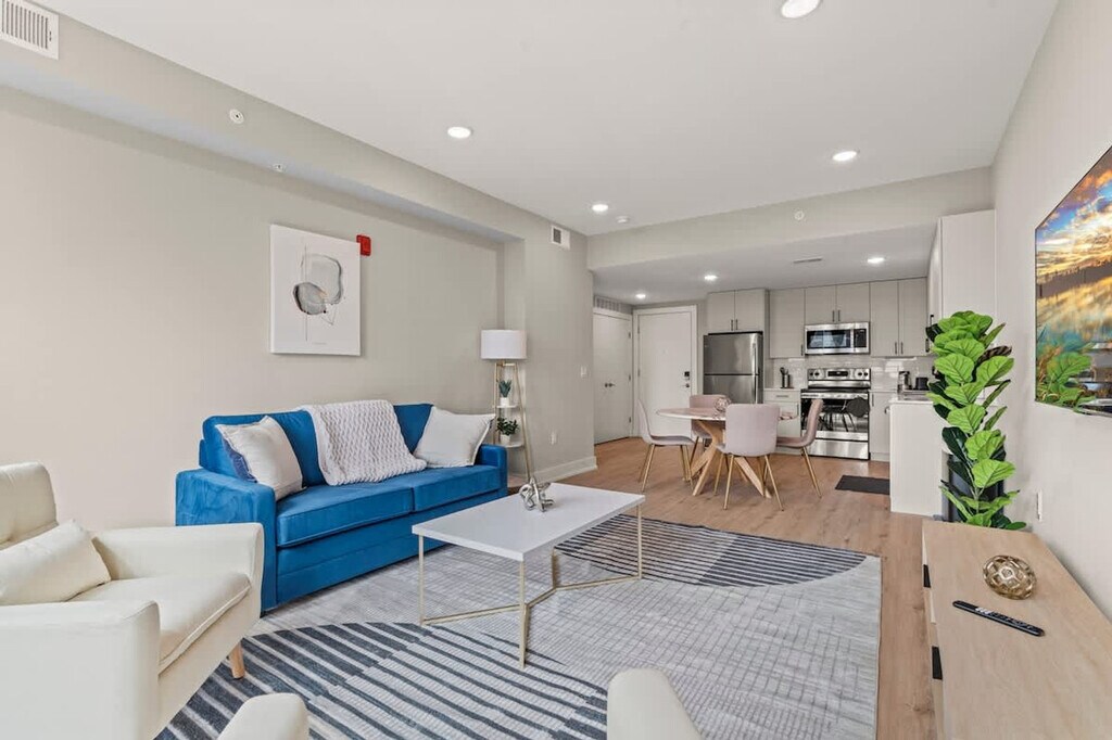 Welcome to your home away from home in the vibrant heart of Philadelphia! This cozy urban retreat offers the perfect blend of comfort, convenience, and modern amenities. Ideal for both business travelers and vacationers, this charming 1-bedroom apartment promises a memorable stay. This inviting apartment is thoughtfully designed to cater to all your needs for a carefree and enjoyable stay. Relax in the serene ambiance of the bedroom, furnished with a queen-size bed, high-quality linens, cozy pillows, and ample closet space. The living room features a stylish and comfortable sofa bed, perfect for accommodating extra guests. The kitchen is outfitted with state-of-the-art stainless steel appliances, including a refrigerator, oven, stove, microwave, and dishwasher, making cooking and cleanup a breeze. The bathroom boasts a contemporary design with clean lines and high-quality finishes, creating a serene and inviting atmosphere. Pets are allowed depending on size, with an additional cleaning fee of $25 per night for 1-4 nights, $200 for 5-29 nights, and $300 for 30+ nights. Experience the best of Philadelphia from this stylish urban apartment. Whether you’re visiting for business or leisure, you'll be perfectly situated to explore the city's vibrant attractions and amenities. There are surveillance cameras in the hallways for security and a Minut device in the unit for noise level monitoring. No shoes are allowed in the house and guests are requested to do their dishes before leaving. Smoking is not allowed indoors, and a $500 fine will be imposed if there is evidence of smoking indoors. Check-in instructions might be withheld until verification is completed. All guests are subject to verification checks and are required to provide necessary information within 24 hours of booking. Same-day bookings require information within 1 hour of booking. The apartment reserves the right to cancel any reservation that does not meet verification criteria. Equipped with a comfortable desk and chair, this apartment ensures you can work for extended periods without discomfort. A laptop computer is not included. [SI]