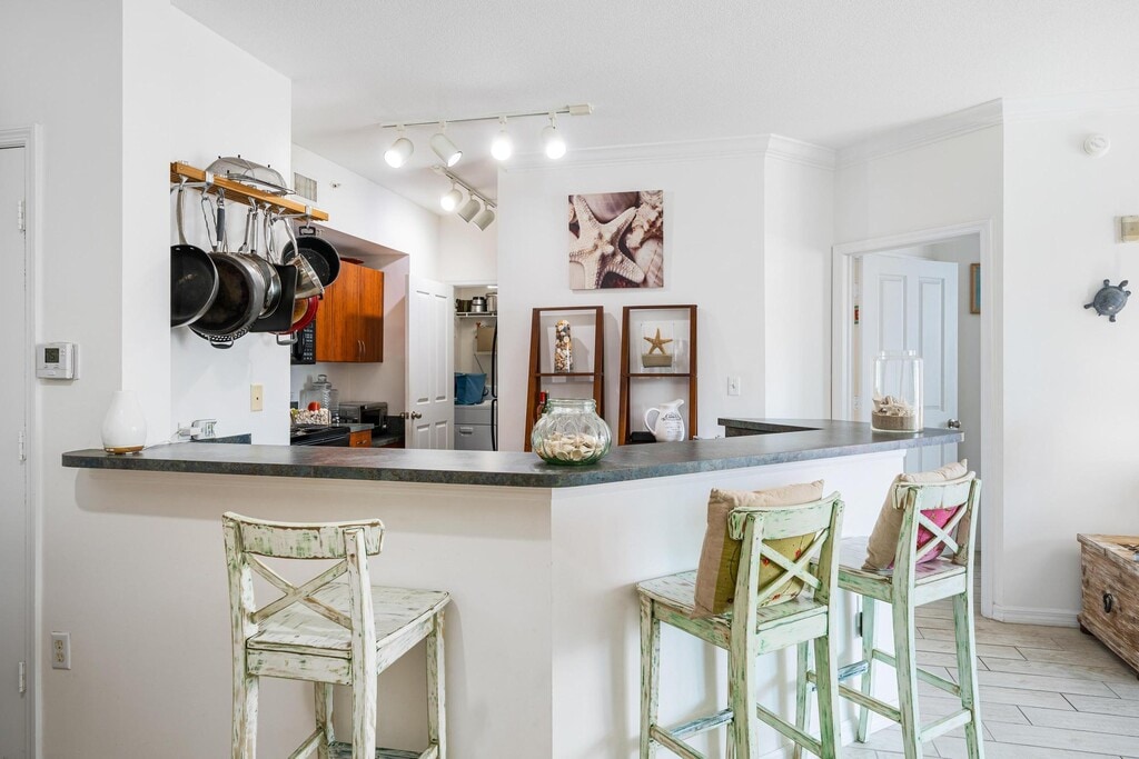 Light and bright remodeled condo at the Waverly at Surfside Beach. Beautifully upgraded wood tile floors and high volume ceilings provide excellent beach charm. Large open kitchen w/ great bar space for entertainment. Fabulous split floor plan provides privacy. Great closets, large primary bathroom, full size washer and dryer. Covered parking. One of the best sized balconies suited for outdoor dining and leisure. Room to store paddle boards and beach gear. Waverly amenities include Private Beach with BBQs and Volleyball, gym, billiard room, 2 swimming pools, hot tub, on site mgmt. Free WIFI/Internet. One of the very best locations in Surfside, walkable to the Surfside & Bal Harbour shops, just a few steps to the beach, close to Grand Beach and Four Seasons hotels. It's all happening in Surfside, secure your spot in this charming beach paradise. MLS # A11965858