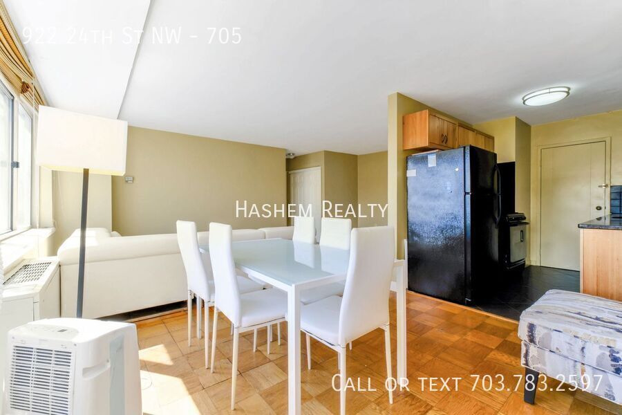 Available starting 6/1/2026. A grand location across the street from the GWU Hospital and Medical School is now available for rent. The proximity to the GWU campus affords a wonderful living experience to walk one block to Whole Foods Grocery or two blocks to the Trader Joe's grocery. All of DC's known features and attractions are nearby and within walking distance including a full array of restaurants, and social life activities. The Metro subway is 20 steps away from this apartment's location. This renovated efficiency apartment has a Southern exposure for sunlight all day long. The open kitchen boasts a dishwasher and all newer appliances. The kitchen has a granite eating bar and granite sinkboards. This unit has a complete wall expanse of windows for bright sunshine facing the building's in-ground pool and expansive courtyard deck. All utilities in this unit with the exception of cable are included in the monthly rental fee. Parking is also available for an monthly fee. The building's lobby and corridors were also recently updated and renovated. This unit requires a minimum one year signed lease agreement. If interested, please call or text John.