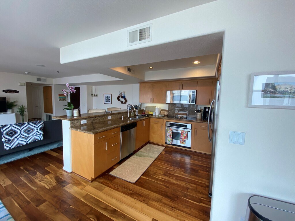 Top floor, south facing/ very sunny! Only 1 shared wall, Quiet!!!! 2 large bedrooms, 2 full bathrooms, 1275 square feet with 10x5 balcony Steps to Crystal Pier, Pacific Beach Oceanfront Boardwalk, Surfing at Tourmaline, and Tuesday Farmers Market on Bayard! 2 assigned large parking spots, side by side, in a secure gated underground garage Granite counter tops and stainless steel kitchen appliances Beautiful hardwood acacia flooring Huge closets in both bedrooms In unit washer + dryer a/c Gated entry with fob Additional secure personal storage room in garage for surfboards, bikes, etc. It is 5 wide x 10 long x 14 high with storage racking 924 Hornblend complex Rent is $6000 per month for the unfurnished condo. Included in the rent is the water bill, and outside window washing. Tenant is in charge of electric, and internet + cable if desired. Monthly maid service is also available upon request (she has been cleaning the apartment monthly for the previous tenants)