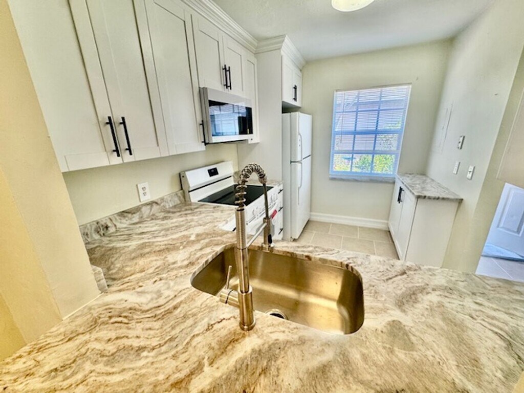 Totally remodeled 2 bedroom, 2 bath garden villa condo. Unit comes with all new appliances, larger screened lanai, and carport. Community pool too. Close to schools, shopping and dining and county parks.
