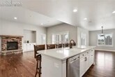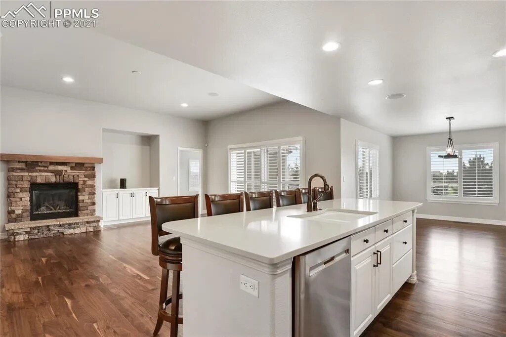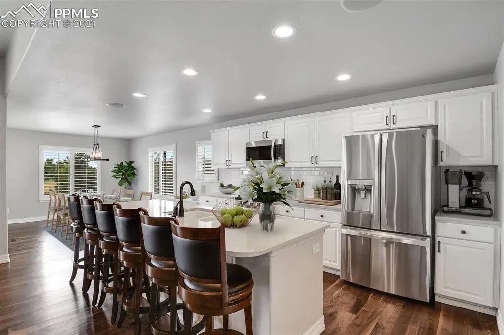 Seth AragonGorgeous home in Cordera on large, premium lot & backs up to open space w/ a neighborhood park & breathtaking view of Pikes Peak. The yard is professionally landscaped & a sidewalk from the front to the backyard patio, huge lawn and newly extended one of a kind trex deck. Walnut hardwood floors. Custom built-ins in living room, appliances, bronze fixtures, whole house audio, & custom Hunter Douglas shutters on all windows & doors. The stone fireplace w/ maple mantle anchors the great room. Enjoy the fantastic mountain views from the expansive sliding glass doors. Whirlpool appliances, a gas range, and Zodiac quartz countertops that a beautiful sophisticated surface that is carefree maintenance & scratch resistant. The Mastercraft cabinetry features dove tail drawer construction and crown molding detail. Moonstone sink, under cabinet lighting & the custom tile backsplash. The luxurious expanded master suite is spacious & comfortable, with views of Pikes Peak. Bath ensuite / double vanities, shower with seat, & a generously sized walk-in closet. The other 4 bedrooms are all spacious (two on the main level, & two on the basement level) w/ lots of windows allowing natural light. Plus an extra room in the basement or use it as an office. The laundry room is on the main level & has a closet and cabinets for storage. The recreation room in the basement is huge & very functional with a projector & big screen! Incredible Colorado outdoor living in Cordera & is known for a wonderful community center, pool and parks. Close to military bases, great schools & shopping along the Powers Corridor.