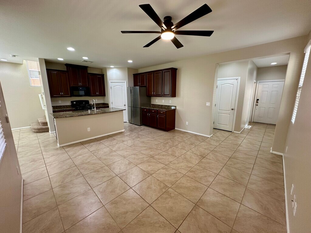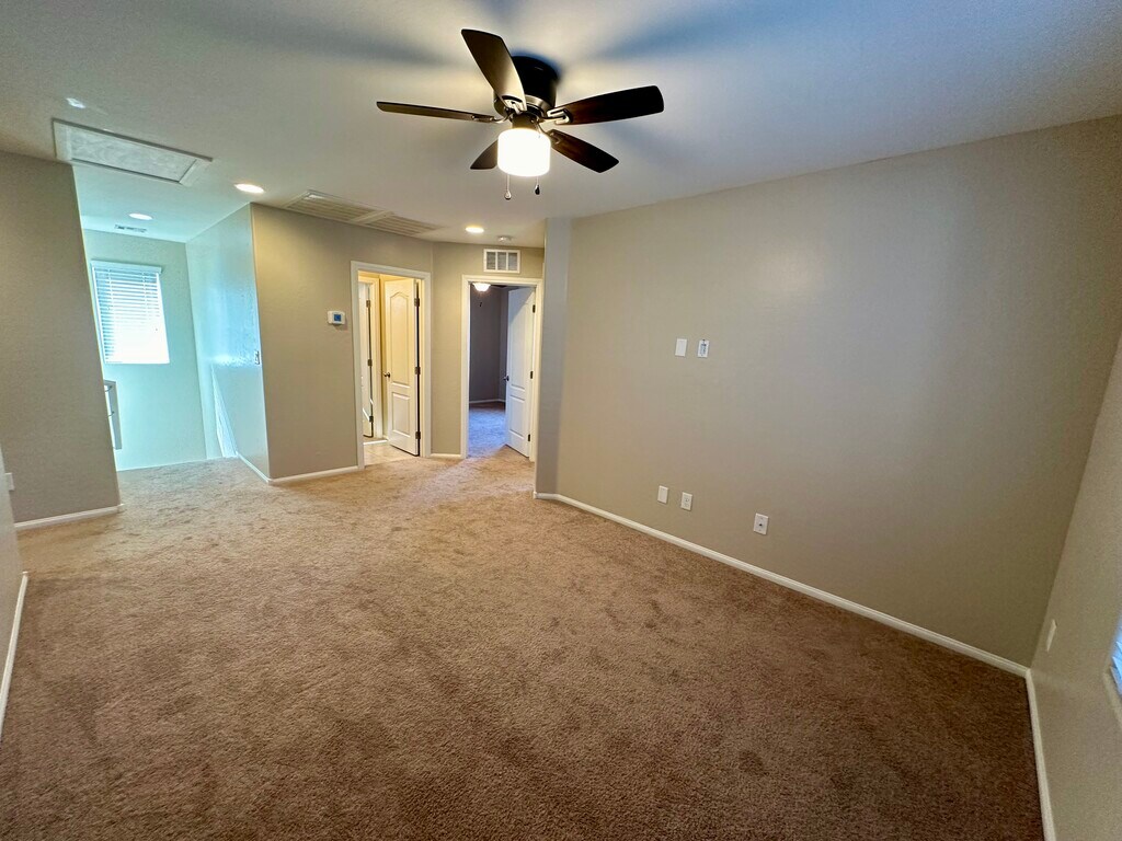 Step into elegance with this impeccably maintained 3-bedroom, 2.5-bathroom home, built in 2015. Freshly painted and thoughtfully designed, this residence offers a modern and inviting ambiance. The open floor plan on the main level showcases sleek tile flooring, luxurious granite countertops, and custom cabinetry in the kitchen, all enhanced by a spacious walk-in pantry. Ceiling fans are thoughtfully placed throughout for added comfort. Upstairs, a generous loft area provides versatile space perfect for a cozy retreat, home office, or additional living space. The home comes fully equipped with top-of-the-line appliances, including a brand-new refrigerator, stove, microwave, dishwasher, washer, and dryer, ensuring convenience from day one. Enhanced security features include upgraded screen doors on both the front and back entrances. Nestled in a tranquil and well-kept neighborhood, this home is ideal for families, thanks to its proximity to top-rated schools. Enjoy outdoor living on the covered patio, perfect for morning coffee or evening relaxation. Don't miss your chance to call this exceptional property your home. Apply easily through Zillow, where you can complete the rental application and authorize a credit and background check with ease. Experience the perfect blend of style, comfort, and convenience in this one-of-a-kind home! Owner pays for HOA, Sewer and Trash. Tenants responsible for paying Gas, Water, Electricity. Smoking is not allowed. For details, call Luis at . Act fast—this gem won’t last!
