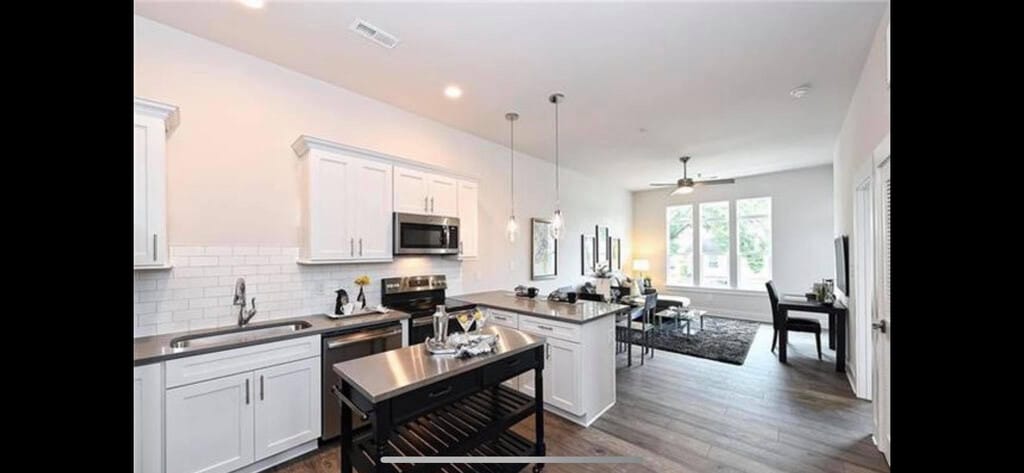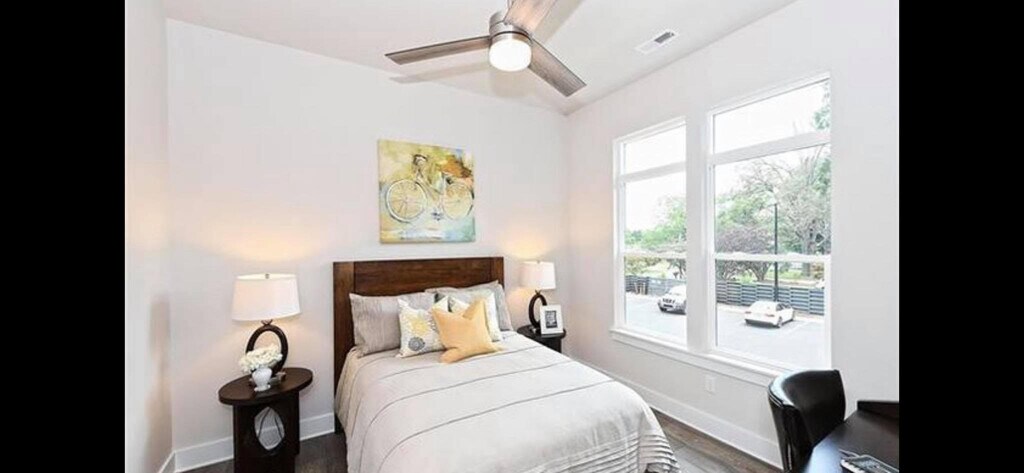 END UNIT Immaculate 2 bed/2 bath 1000 sq. ft. condo with balcony in heart of Cotswold neighborhood in the Charlotte area. Built in 2018 with new appliances. Here you're 10 minutes away from Southend, and Uptown Charlotte. Minutes away from main attractions in Charlotte like the Epicentre, BB&T ballpark, Charlotte motor speedway, Whitewater center, Lake Norman, hiking sites and so much more. There are two private bedrooms, and two private bathrooms. Each bathroom has its own shower with tile wall panels. There are cameras facing the front and back of the building and one designated parking spot with additional first come first serve guest spots. Fresh paint job in the entire house done August 2021. Brand new wood floors installed in 2023. Tenant pays for gas, electric, and internet. No smoking permitted. Pets allowed. Tenant(s) liable for all damage repairs before lease end. All occupants names must be on the lease. Rent due 1st of every month.