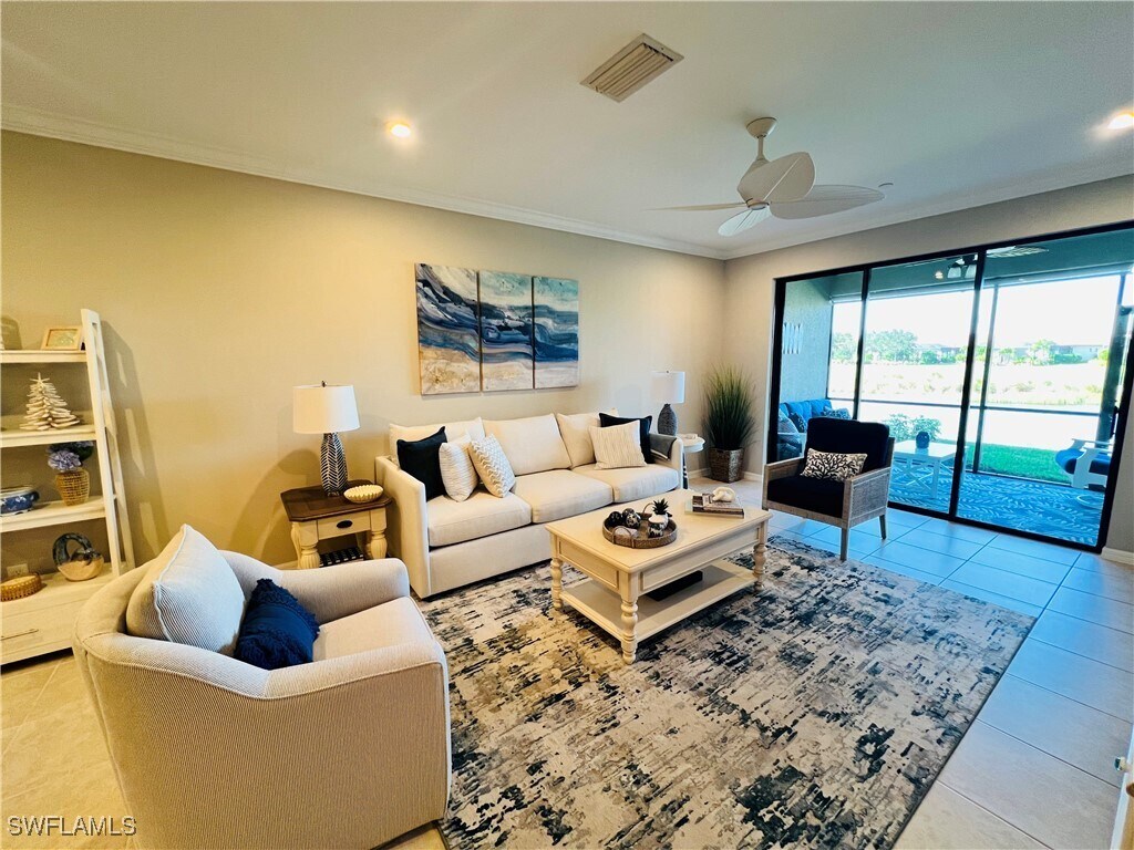 Price slash for JANUARY 2026 & APRIL 2026! Live the resort lifestyle at Esplanade! Available for a minimum 30-day stay,this immaculate two-bedroom plus den,two-bath first-floor end-unit condominium offers the perfect Naples getaway. Lightly lived in and never previously rented,this residence features an open,airy floor plan filled with natural light,multi-sliding glass doors,and a private lanai with breathtaking lake and golf course views. For periods of relaxation,each bedroom and the living area,are equipped with smart TV's. The unique positioning provides both beauty and privacy—enjoy spectacular sunsets over the lake without direct glare into the living space. Inside,the condo is beautifully appointed with tile flooring throughout,ceiling fans in every major room,white shaker-style cabinetry,GE stainless steel appliances,and a detached one-car garage. Your rental includes a club/sports membership,granting access to Esplanade’s resort-style amenities: a spectacular pool with cabanas and the Bahama Bar,tennis,pickleball and bocce courts,Koquina Day Spa,state-of-the-art fitness center,dog park,14 miles of scenic trails,and limited golf privileges with advanced tee times. Dining options abound with an on-site restaurant,bar,wine tasting room,wine lockers,and a café. Whether for a month or the season,this pristine condo is the perfect place to enjoy Naples living at its finest.