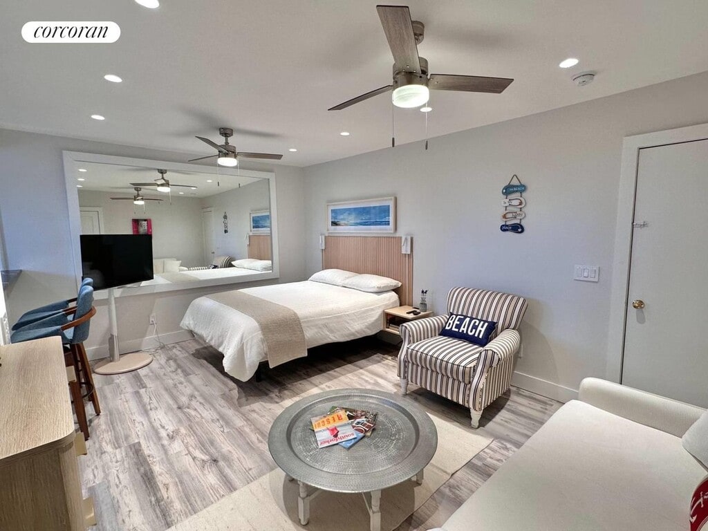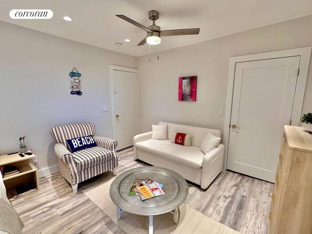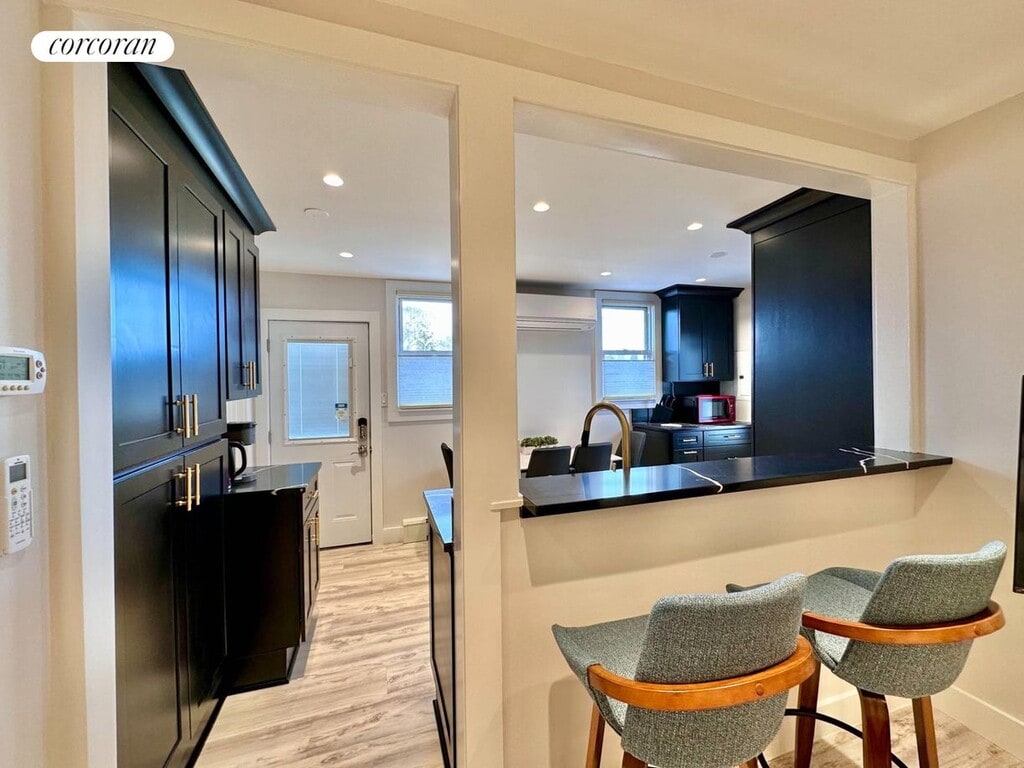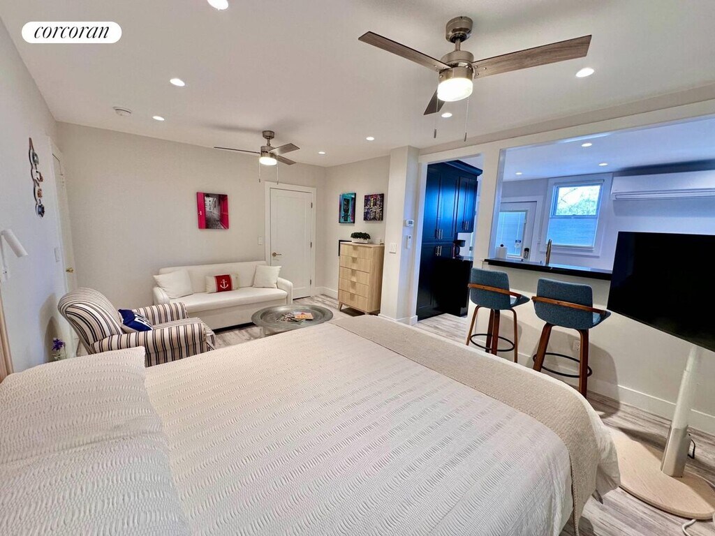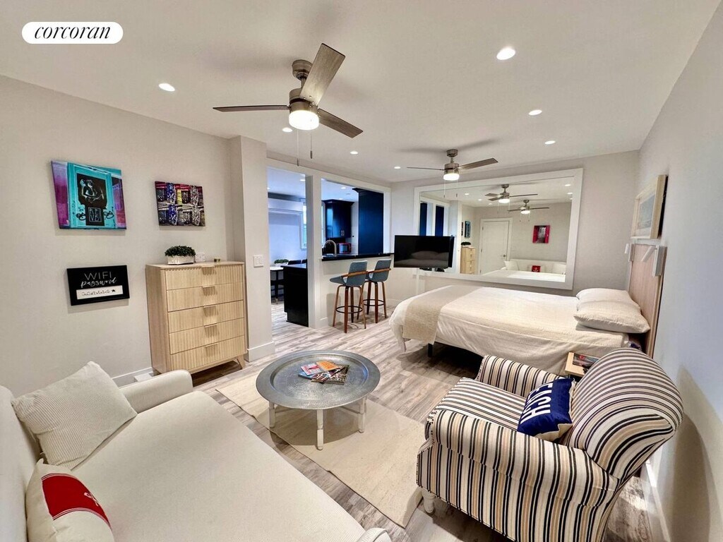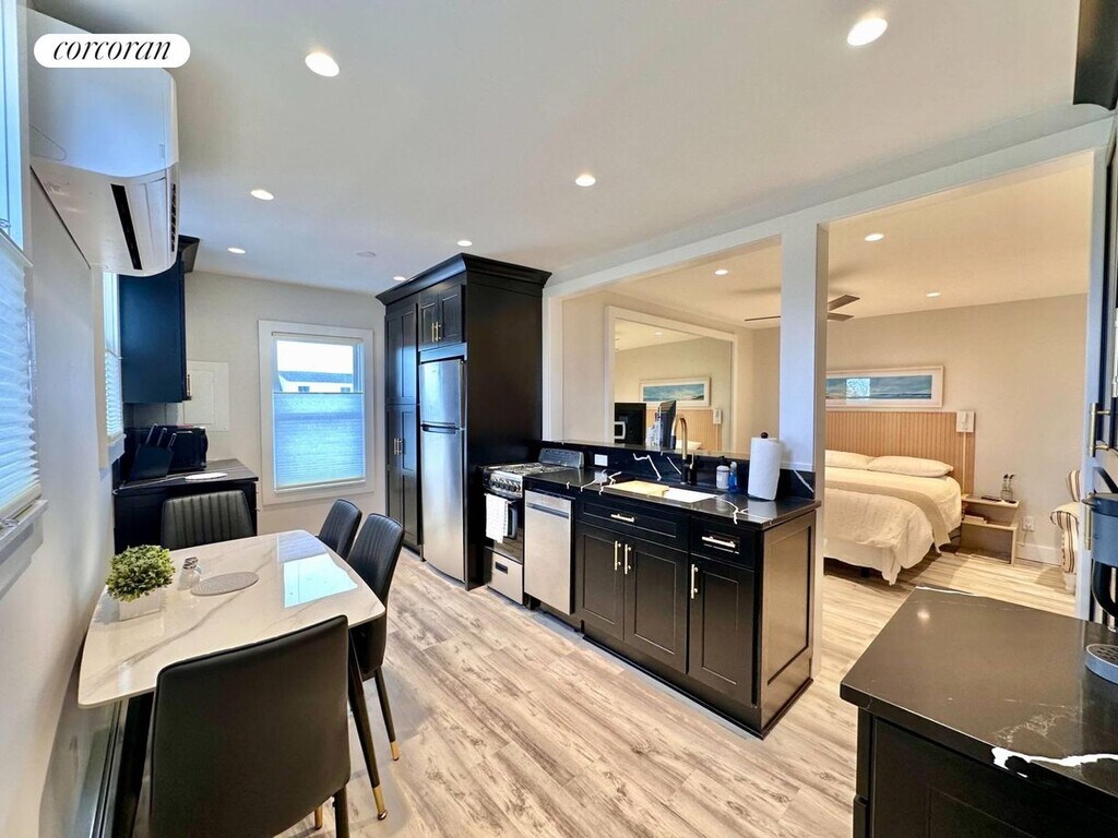 This completely renovated studio offers bright, efficient living with an open layout and abundant natural light. The renovation includes a brand-new kitchen, updated wiring, a new air-conditioning unit, and in-unit laundry, along with a dishwasher and microwave for everyday convenience. Thoughtfully designed storage maximizes the space, while the eat-in kitchen flows easily into the living area. Step outside to a private outdoor deck-perfect for morning coffee or evening downtime. A dedicated parking spot is included, a rare and valuable feature in this prime village location. Enjoy immediate access to Main Street's shops, restaurants, and the Westhampton Beach Performing Arts Center, with ocean beaches just minutes away.