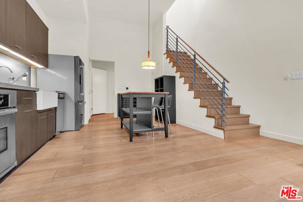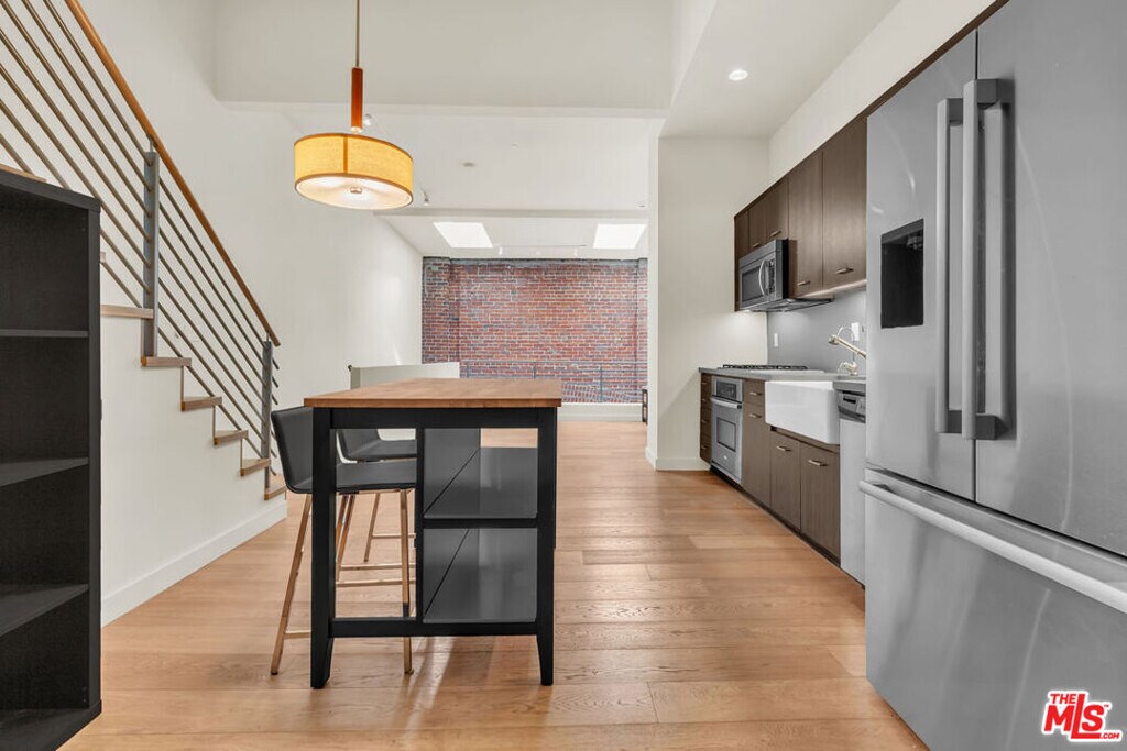 Experience authentic Arts District living in this sophisticated three-level live/work loft located at the iconic Barn Lofts at 940 E 2nd Street. Originally constructed in 1906 as a produce warehouse and later reimagined into a boutique collection of 38 residences, the building blends historic industrial character with modern design.Inside, the residence features soaring ceilings, dramatic exposed brick, steel beams, and expansive vertical space that fills with natural light. The contemporary kitchen and bathrooms are appointed with quartz countertops, stainless steel appliances and designer plumbing fixtures.The thoughtfully designed floor plan separates living and sleeping areas across three levels: the main living, dining, and kitchen space occupies the second floor, while bedrooms are positioned on the first and third floors for added privacy. The lower bedroom can also be an office or work space, with its own entry. Each level includes a bathroom. Additional conveniences include in-unit laundry, generous storage, and a private rooftop deck ideal for outdoor enjoyment.The property offers rare two-car parking with direct access into the loft from both inside and outside the secured building. Residents also enjoy a gated street-level patio within the building grounds.Situated in the heart of the vibrant Arts District, the location places you moments from acclaimed dining, coffee shops, retail, and galleries. MLS# 26652971