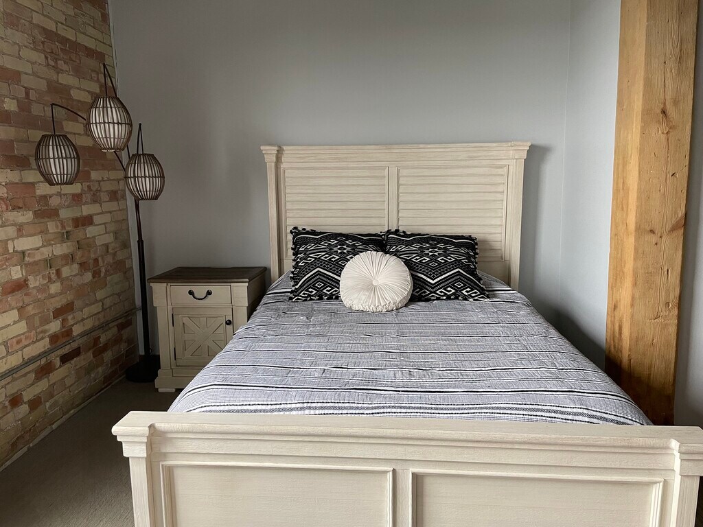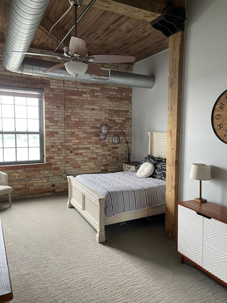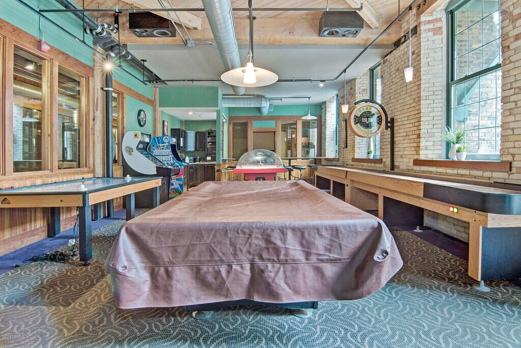 2 bedroom, 1 bathroom Boardwalk Condominium with a private balcony overlooking the pool courtyard available October 5th, 2025. Features include 12' ceilings, an island kitchen, large living area with tons of natural light, dining area, 2 large bedrooms and one covered parking space included. Boardwalk is an award winning historic 400,000 square foot furniture factory converted into 242 loft condominiums in downtown Grand Rapids. As a tenant of the Boardwalk Building you receive access to it's many amenities which include a pool, hot tub, game room, movie theater, bikes, kayaks, rooftop deck, forest courtyard, 24 hour security, Brickyard Tavern, and Pure hair salon. Monthly rent is $1950 per month, which includes all utilities except electric and wifi/cable. Security deposit is one month's rent. Cross Streets: Mason Directions: North of the Historic 6th Street Bridge across from Canal Park on the Grand River.