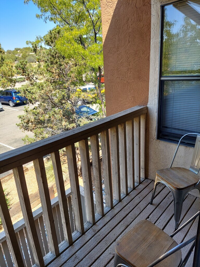 Welcome to Santa Fe! This bright, south-facing second-floor condo in The Reserve offers comfort, convenience, and scenic living on the north side of town. The home features 2 bedrooms and 2 full bathrooms, forced-air heating, and evaporative cooling for year-round comfort. Interior highlights include spacious closets, carpet throughout for quiet coziness, and easy-care tile flooring in the entry, kitchen, and bathrooms. Enjoy the sunshine from your private balcony with exterior storage closet. Located just steps from the year-round heated pool, hot tub, fitness center, updated laundry facility, and community room, The Reserve is a gated condominium community with excellent on-site management and access to nearby hiking trails. This unit is ideally situated for commuters — just a 10-minute walk to the LANL Park & Ride, 12 minutes to the Plaza, and 15 minutes to the State Capitol. The markets and shops at DeVargas Center are a 5-minute drive (or 7 minutes by bike), and the Santa Fe Opera is only 10 minutes away in the other direction. Contact Santa Fe Property Management, LLC today to schedule your visit and make this lovely condo your next home!