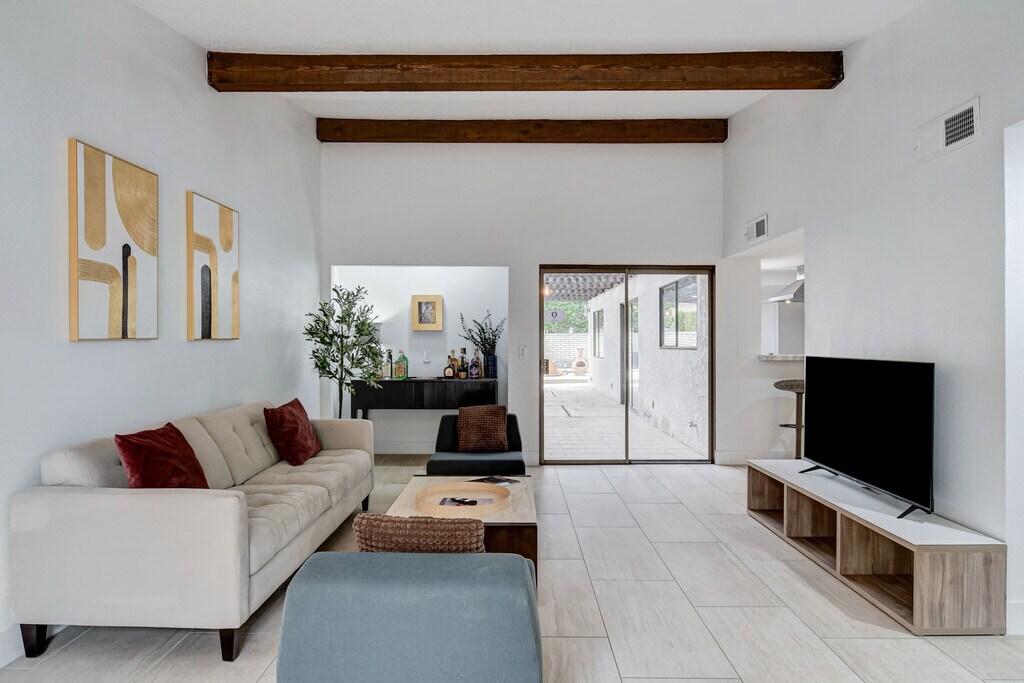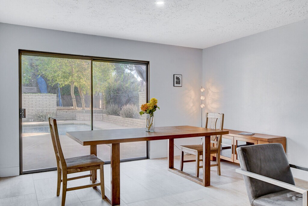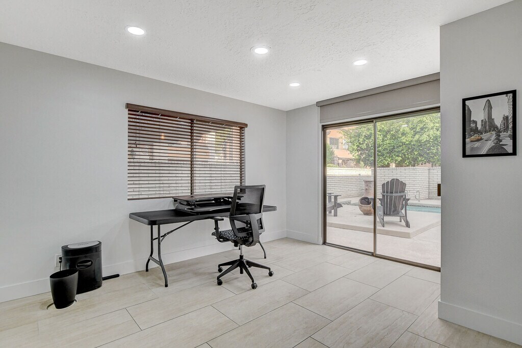 Jay LeanPET FRIENDLY Furnished Golf Course Home in guard gated Las Vegas Country Club Estates! Just blocks from The Strip & Fontainebleau Las Vegas Resort.Owner/Agent prefers shorter lease to start (3 Month Min.) then Month-to-Month.3Bd/2.5Bth (Furnished as 2Bd, plus Office).Fresh Paint throughout, 18x36 Porcelain Tile & Engineered Wood Flooring, Newer Kitchen Cabinets, Marble Counters & SS Appliances, LED Lighting, Gas Fireplace, Huge Primary Bedroom Suite, "Elfa" Closet Systems, Large 2nd Bd. Suite, Private Pool, Built-In Gas BBQ, New SAMSUNG Front Load Washer/Dryer has never been used! Gated Courtyard Entrance, 2 Car Garage, Large South Facing Lot, Yard & Pool backs to Golf Course & Augusta Dr. Homes! Great Strip Views! Vegas Living at it's best! Owner pays weekly yard & pool service.*Agents, this home is ideal for clients moving to or remodeling needing a shorter stay! *NO AIRBNB, SHORT TERM RENTALS OR SUBLETTING PERMITTED BY TENANTS! *Owner does not provide linens.