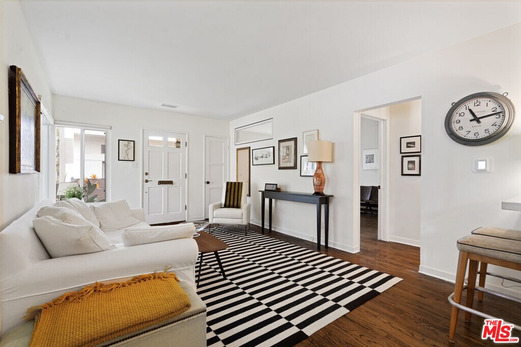 Charming and bright 1-bedroom, 1-bath residence located in a beautiful Santa Monica neighborhood just moments from Montana Ave. This inviting 666 sq ft home features hardwood floors, abundant natural light, and a spacious open living and dining area perfect for relaxing or entertaining. The cheerful kitchen offers ample cabinetry, a breakfast bar, and stainless steel appliances, creating a functional and stylish cooking space. The bedroom is generously sized with great closet space, while the bathroom maintains classic charm. Additional amenities include a private one-car garage and community laundry with convenient coin-operated machines. Situated in a well-maintained building surrounded by mature trees and lush landscaping, this home offers a peaceful residential feel while still being close to shops, cafes, parks, and the beachan ideal opportunity to enjoy the best of Santa Monica living. MLS# 26661307