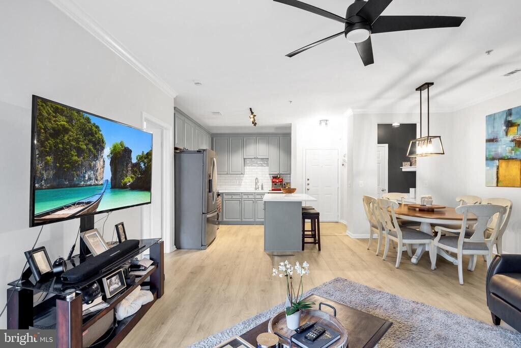 Welcome Home to Acadia Condominiums. This 2 Bed, 2 Bath + Office Nook has been upgraded throughout and shows like a model home! Gourmet kitchen with a large island and a new quartz countertop. Gray cabinetry with modern subway tile backsplash. The open concept allows for a spacious living area and room for a large dining table. This unit has upgraded lighting and ceiling fans. The primary suite offers a custom look with a paneled navy accent wall. Large walk-in closet and updated ensuite bath. The bath features a dual vanity with quartz countertop, a new toilet, and fixtures. The secondary bedroom is equally impressive with modern finishes, a large walk-in closet, and a hall bath with a new vanity, toilet, and fixtures. Conveniently located full-size side-by-side washer and dryer. Enjoy a morning coffee on your own balcony that faces the peaceful courtyard. Luxury vinyl plank floors throughout. A Nest thermostat is included. The office nook includes an upgraded quartz countertop as well. Perfect for remote work or telework. Ideal location: less than 0.5 miles to Vienna Metro Station, close to major roads (I-66, 495, 123, 29, 50). Easily accessible to the Town of Vienna, Fairfax Circle, the Mosaic District, and Old Town Fairfax. 14.5 Miles to Reagan National Airport (DCA) and 17.4 Miles to Dulles (IAD). Acadia Condominiums features: a Clubhouse with a recreation and sports center, outdoor swimming pool, golf simulation theater, indoor basketball court, cinema room with a large projection screen TV, game room with billiards, foosball and shuffleboard, high-speed computer lounge, 24-hour fitness room, controlled access, elevators, cyber cafe, and landscaped courtyards (two with gas grills). Utilities included: Water, Sewer, and Trash. Tenant pays for: Electric, Gas, Cable, and Internet. 1 Car Garage Space Included (G2-19) and additional parking permit. Plenty of visitor parking! Pets considered on a case by case basis. Don't miss out, apply today! Online applications accepted through Rent Spree.