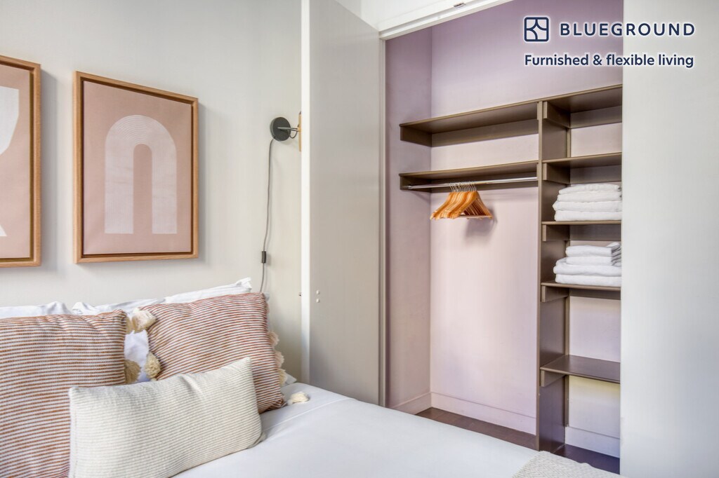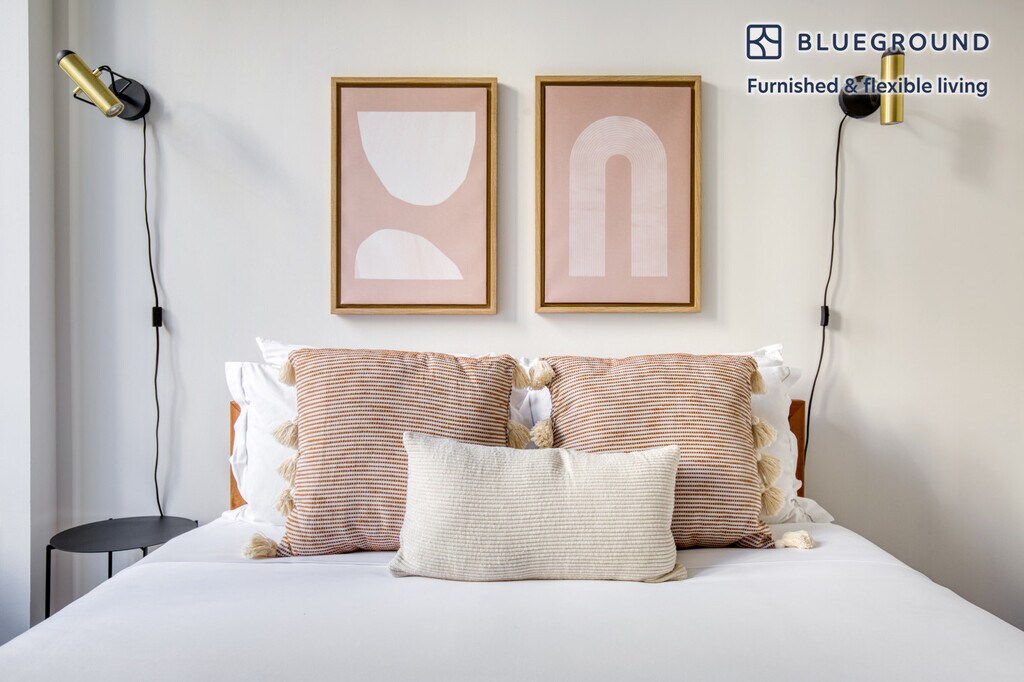 Show up and start living from day one in New York with this cozy one bedroom Blueground apartment. You’ll love coming home to this thoughtfully furnished, beautifully designed, and fully equipped Financial District home. (ID #NYC206) The advertised rate of $4,380/month is the lowest available price, based on a 1 month(s) and 4 day(s) stay with a move-in date of April 15, 2026. If you’re looking for a 1-year stay, the rate is $5,510/month. Rates vary depending on the duration of stay, season, and other parameters. For exact pricing and additional pricing components, please visit our website and enter your desired move-in and move-out dates. The rate is applicable when billed upfront; it can be higher if billed in multiple payments. Brokers are welcome to reach out. Were you looking for an unfurnished lease? Try Blueground instead and upgrade from unfurnished to furnished living: - Furnished at rates comparable to unfurnished - No setup or furniture costs - save thousands - Move-in ready - save time, just bring your suitcase Designed with you in mind Thoughtfully designed with bespoke finishes, modern furnishings, and a fully equipped kitchen, you’ll enjoy that “I’m home” feeling with this Blueground apartment. Whether you’re lounging in your spacious living room streaming the latest and greatest entertainment on the smart TV or premium wireless speaker, or getting some well-earned rest on the superior quality mattress with luxury linens, you’ll fall in love with everything this Financial District apartment has to offer. This apartment also offers in-apartment laundry. Sleeping arrangements Queen Bed, 63in/160cm Amenities Building amenities unique to this one bedroom apartment include an on-site: - Basketball Court - Doorman - Dryer - Elevator - Washing machine - Lounge - Pets allowed Arrival and ongoing support The entire apartment is yours to enjoy! Throughout your stay, you’ll have access to our Client Experience team through the Blueground App. You can schedule additional cleanings, submit maintenance requests, and view our neighborhood recommendations with just a few taps. We’ll share all details upon confirmation of your stay. Ideally Located This furnished apartment is located in the Financial District, also known as FiDi. Home to Wall Street, One World Trade Center, the South Street Seaport, and Bowling Green it is a constant hub of activity. During the week the sidewalk is always bustling and the restaurants are filled with professionals. The glittering skyscrapers and well-known landmarks make this one of the city’s most recognizable and historic neighborhoods. By subway, Times Square is about 20 minutes away. Other things to note Building amenities may have an extra cost. This Blueground apartment has flexible lease options, allowing you to book it for one month, a year, or more. Pets are welcome, though weight limits and breed restrictions apply and may incur fees. Brokes CYOF. We take great pride in ensuring every photo displayed is shot in our own units with our actual furnishings. That said, we regularly refresh our decor and furniture arrangement, which may differ from what’s pictured. [SI]