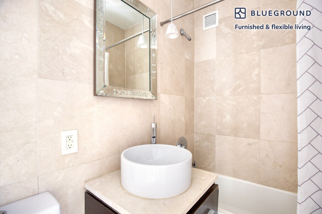 Feel at home wherever you choose to live with Blueground. You’ll love this stylish Financial District furnished one bedroom apartment with its modern decor, fully equipped kitchen, and spacious living room with great views. Ideally located, you’re close to all the best that New York has to offer! (ID #NYC119) The advertised rate of $4,680/month is the lowest available price, based on a 1 month(s) and 13 day(s) stay with a move-in date of April 4, 2026. If you’re looking for a 1-year stay, the rate is $5,360/month. Rates vary depending on the duration of stay, season, and other parameters. For exact pricing and additional pricing components, please visit our website and enter your desired move-in and move-out dates. The rate is applicable when billed upfront; it can be higher if billed in multiple payments. Brokers are welcome to reach out. Were you looking for an unfurnished lease? Try Blueground instead and upgrade from unfurnished to furnished living: - Furnished at rates comparable to unfurnished - No setup or furniture costs - save thousands - Move-in ready - save time, just bring your suitcase Designed with you in mind As with any Blueground apartment, you’ll find a thoughtfully designed space complete with beautiful furniture and a fully equipped kitchen in this one bedroom property. And, thanks to our superior quality mattresses, luxury linens, and towels, you can relax knowing you’ll always feel comfortably at home. When you’re ready for some fun, you can take in the New York vibes or bring the entertainment to you with the premium wireless speaker or smart TV. This apartment also offers in-apartment laundry. Sleeping arrangements Queen Bed, 63in/160cm Amenities Building amenities unique to this one bedroom apartment include an on-site: - Basketball Court - Doorman - Dryer - Elevator - Washing machine - Lounge - Pets allowed Arrival and ongoing support The entire apartment is yours to enjoy! Throughout your stay, you’ll have access to our Client Experience team through the Blueground App. You can schedule additional cleanings, submit maintenance requests, and view our neighborhood recommendations with just a few taps. We’ll share all details upon confirmation of your stay. Ideally Located This furnished apartment is located in the Financial District, also known as FiDi. Home to Wall Street, One World Trade Center, the South Street Seaport, and Bowling Green it is a constant hub of activity. During the week the sidewalk is always bustling and the restaurants are filled with professionals. The glittering skyscrapers and well-known landmarks make this one of the city’s most recognizable and historic neighborhoods. By subway, Times Square is about 20 minutes away. Other things to note Building amenities may have an extra cost. This Blueground apartment has flexible lease options, allowing you to book it for one month, a year, or more. Pets are welcome, though weight limits and breed restrictions apply and may incur fees. Brokes CYOF. We take great pride in ensuring every photo displayed is shot in our own units with our actual furnishings. That said, we regularly refresh our decor and furniture arrangement, which may differ from what’s pictured. [SI]