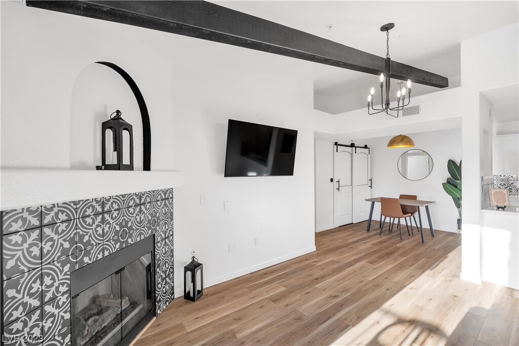 Fully furnished SHORT or LONG TERM. Welcome to Casa Candelabra ~ Enjoy your stay in a premier location of Seven Hills Henderson in this beautifully renovated Spanish Modern Abode in a gated community. This Condo’s Romantic ambiance offers vaulted ceilings with gorgeous beams, a beautiful gas fireplace with spanish tile accents, chic modern cabinetry with top of the line kitchen appliances, a gorgeous spa shower and a cozy bedroom with walk in closet. Prepare your meals in the Chefs Kitchen with Gas Range, large sink & Reverse Osmosis Water System. Enjoy the relaxing balcony overlooking Sunsets, Mountain and City views or walks throughout the complex meticulous grounds, also a Fitness Center, Community Pool & Spa. All utilites, furniture, and housewares are inclusive with monthly rent.