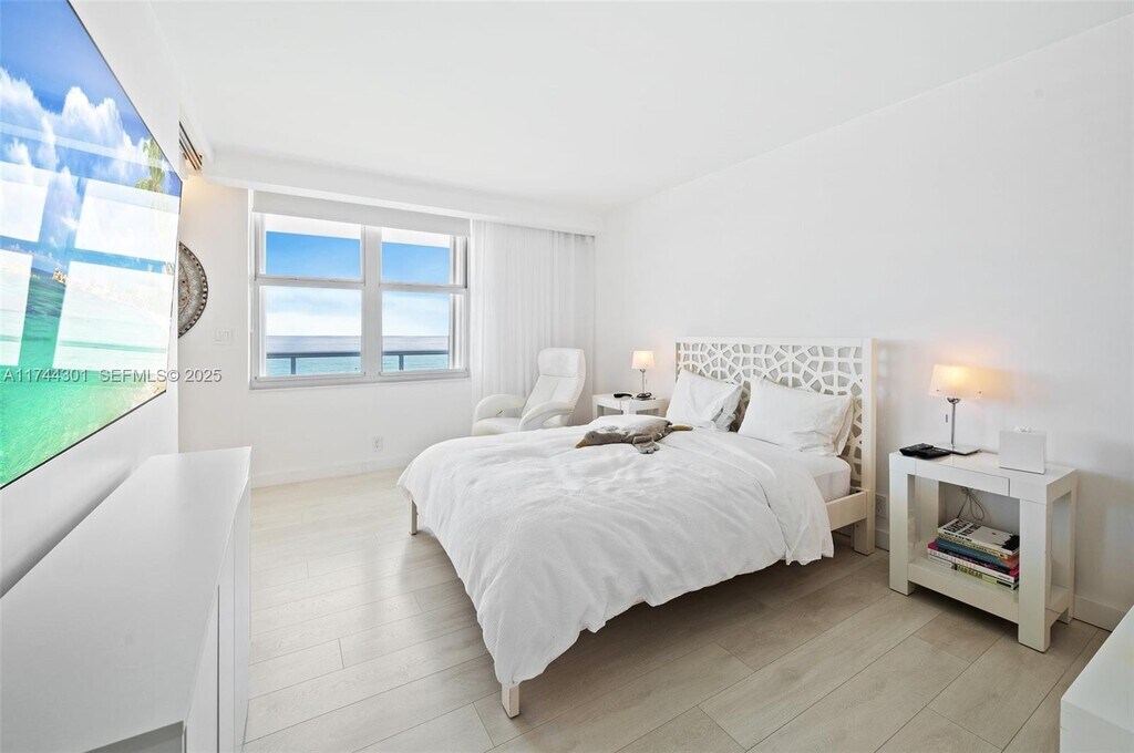 Ocean views! Completely remodeled 1 bedroom + den (converted second bedroom) plus 2 full bathrooms- facing south. Completely furnished and equipped. Building just renovated with impact windows, new glass balconies. Unit has great views of ocean and the Miami Skyline. Beach service included , as well as cable and internet. Professionally managed building offering premier amenities, including a 24/7 front desk, resort-style pool, state-of-the-art fitness and business centers, Steps from Bal Harbour Shops, fine dining restaurants, boutique hotels, places of worship, and gourmet grocery stores—everything you need for effortless luxury living.Can be rented for 6 months (minimum) for $36,000 + security deposit. Wont last!. The association will assign a parking space to the Unit once it rents. Guest parking available.