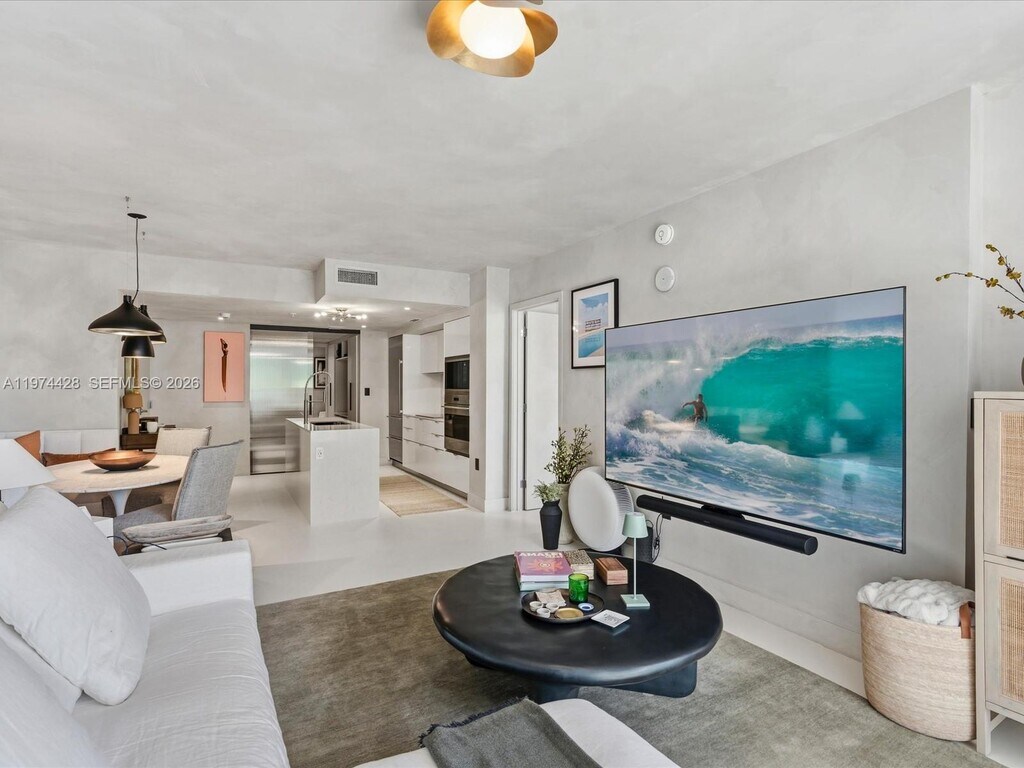 Bijou residence 705 offers a rare opportunity to lease a fully customized residence in one of Bay Harbor Islands’ most exclusive boutique waterfront buildings. This modern 1-bedroom plus enclosed den, 2-bathroom home lives like a true 2-bedroom and offers 1,031 interior square feet plus 166 square feet across two private balconies. The spacious primary suite features custom closets and its own private balcony. The enclosed den with custom doors serves as a guest room, office or second bedroom. Designer upgrades elevate every space including polished concrete flooring, custom limewash walls and built-in cabinetry and storage. A custom dining banquette adds style and functionality. Additional highlights include custom shades throughout, a walk-in laundry room and a built-in safe. The Italian-designed MiaCucina kitchen features marble countertops and backsplash paired with premium Wolf and Sub-Zero appliances. Two valet parking spaces are included. Completed in 2021, Bijou is a boutique 9-story waterfront building along Biscayne Bay with 150 feet of Bay Harbor Islands frontage and dock access. Residents enjoy a rooftop lounge with sweeping bay views, fitness center, residents lounge and 24-hour security. The resort-style pool deck features a 36-foot infinity-edge pool overlooking the bay, whirlpool, cabanas, chaises, fire pit lounge and outdoor bar and dining area. Located two blocks from Bal Harbour Shops and moments from beaches, fine dining and luxury shopping. MLS # A11974428