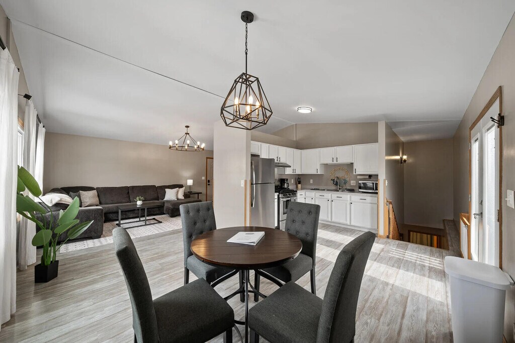 Welcome to Paws at the Lake, a 3-bedroom, 2-bath home designed for both relaxation and adventure.This cozy retreat is thoughtfully set up so you and your furry friends feel right at home. Inside, enjoy a fully equipped kitchen and dining area for family meals, a large sectional for movie nights, plus a finished basement with a second family room and TV. Located just steps from the boat launch in Lance Park, you’ll have easy access to lake adventures, fishing, and scenic walks. With plenty of space indoors and out, this home is the perfect blend of comfort and convenience. Highlights: • 3 bedrooms, 2 bathrooms (sleeps 6) • Pet-friendly setup for your four-legged companions • Fully equipped kitchen & dining area • Spacious living room with plush sectional for movie nights • Finished basement with additional family room & TV • Steps from Lance Park boat launch, fishing & lake access Good to know: • Entry requires a flight of stairs • Neighboring Twin Lakes Dog-Friendly home available to rent together Mid-Term Rental Rates: • October – April: $2,500/month • September & May: $2,700.00/month • June, July, August: $13,000.00/month Settle in at Paws at the Lake - where family, friends, and pets can relax, explore, and enjoy Lake Life together. Contact us today to learn more and secure your stay.