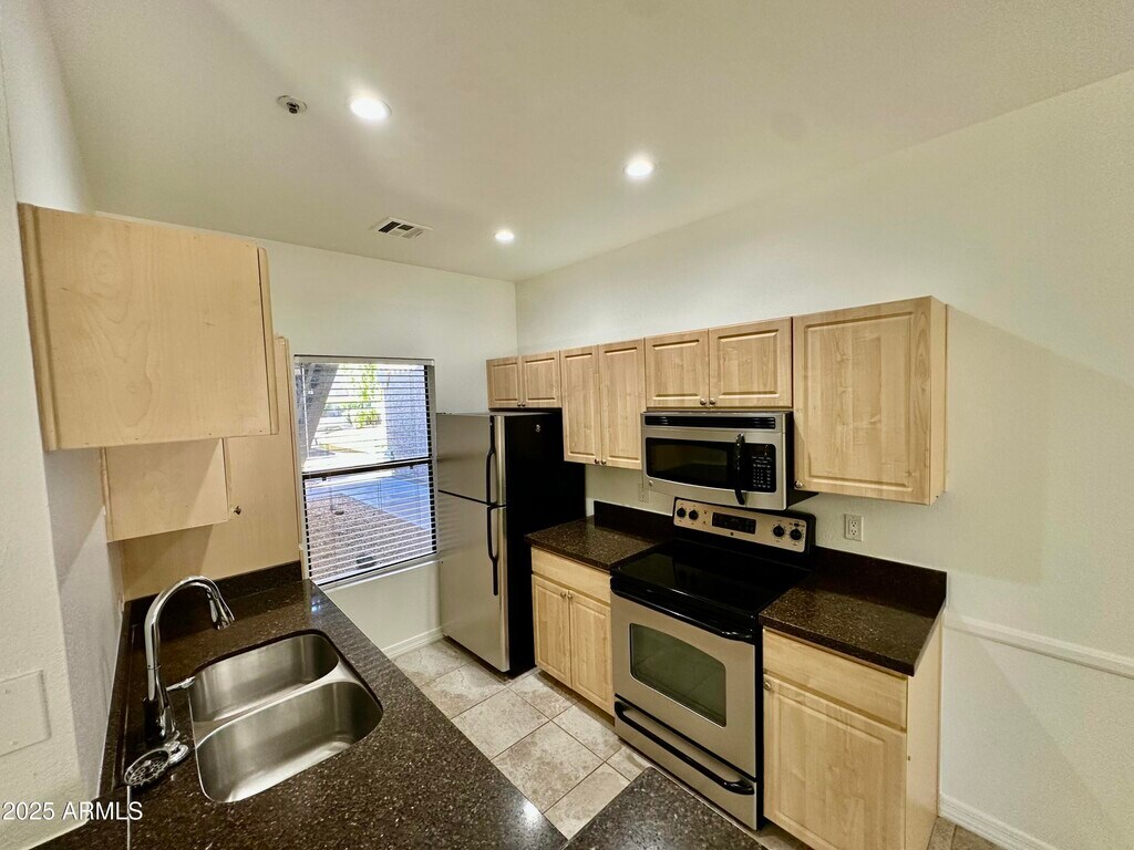 Move-in ready,unfurnished 3-bedroom,2-bath ground-floor condo in the desirable Presidio community. Features include a remodeled kitchen,in-unit washer/dryer,and private patios off the living room and primary suite for seamless indoor-outdoor living. Includes covered parking with guest spaces. Enjoy community amenities,including a pool and a modern gym. HOA fees paid by landlord,covering exterior maintenance,water,and trash. Conveniently located near shopping,dining,greenbelt trails,hiking,HonorHealth Scottsdale Shea Medical Center,and the International School.
