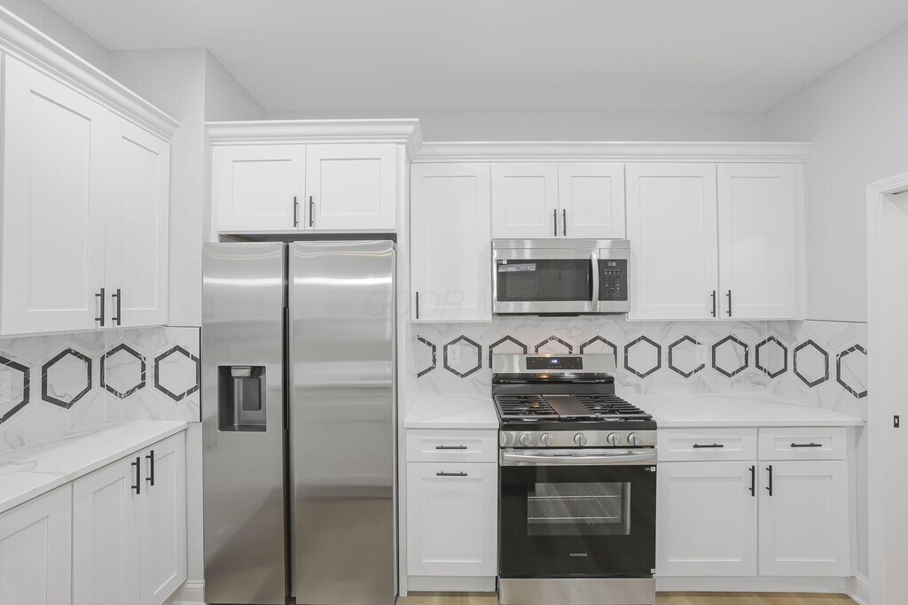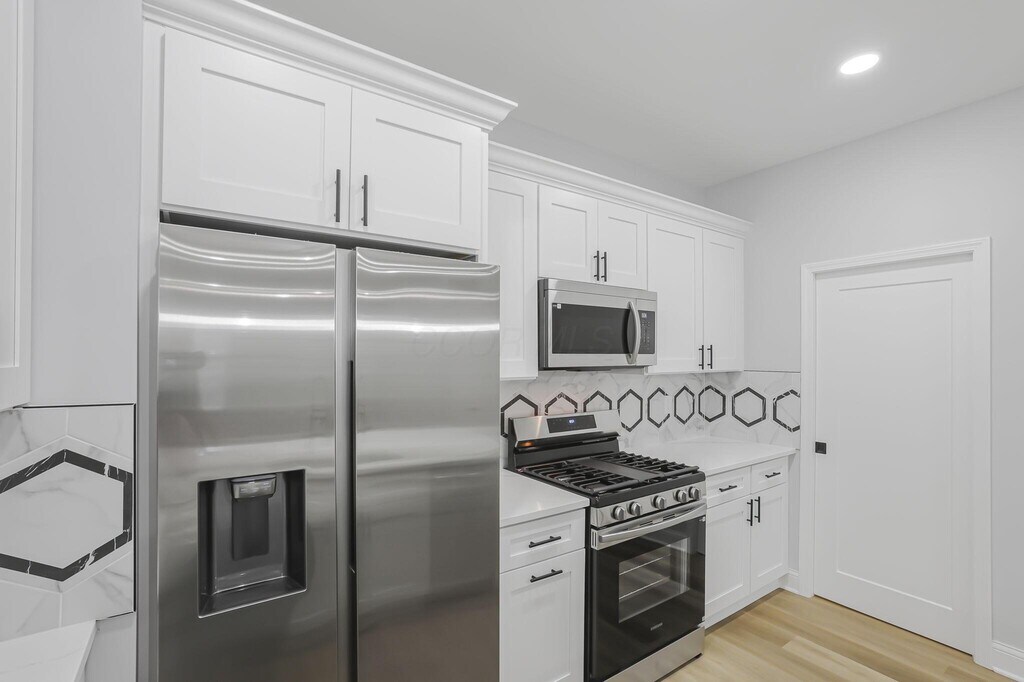 691 Heyl is half of a brand-new 2026-built duplex. This is a beautifully designed,three-level home,offering 3 bedrooms and 3.5 bathrooms. This home features an inviting front porch leading into a bright,open living space highlighted by luxury vinyl plank flooring,recessed lighting,and thoughtful modern finishes throughout. The kitchen is designed to impress,featuring upgraded stainless steel appliances including a gas range,granite countertops,bar seating with designer pendant lighting,and a convenient pop-up outlet with USB ports. The home also include a first-floor half bath with a space-saving pocket door. Upstairs,each bedroom features its own private bath,along with a conveniently located laundry room just steps away. The lower level offers a third large bedroom suite complete with a private bath and egress window,making it perfect for use as a guest suite or additional rental opportunity. Outside,this home features a fenced rear yard with concrete patio,ideal for relaxing or entertaining,along with a one-car garage plus a driveway,providing additional off-street parking. Additional highlights include ceiling fans in the living area and bedrooms,designer lighting fixtures,landscaped front yard,and radon mitigation system. Ideally located just blocks from Nationwide Children's Hospital,near the revitalization of Parsons Avenue,and only minutes from downtown Columbus,this home combines modern living with unbeatable convenience.